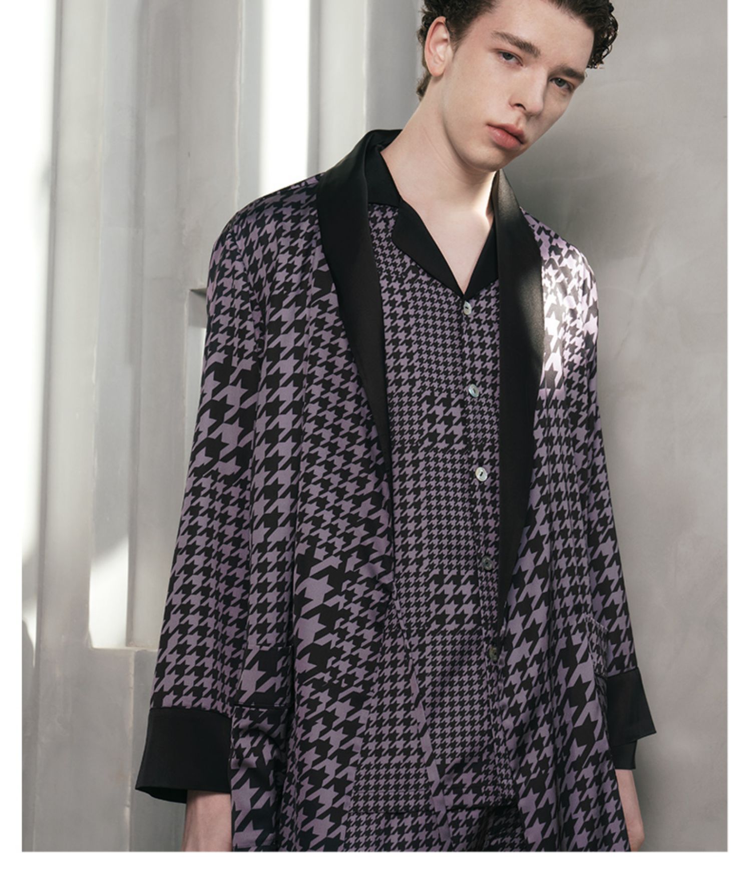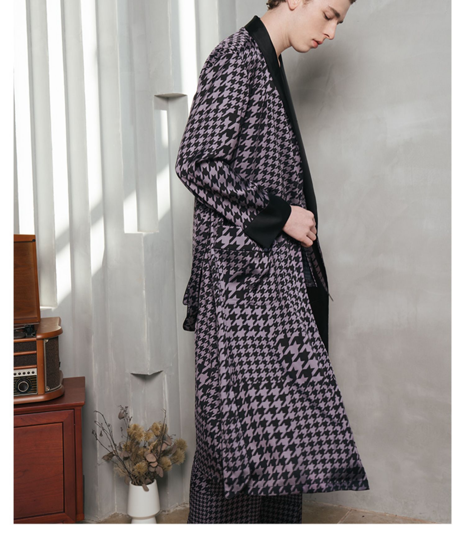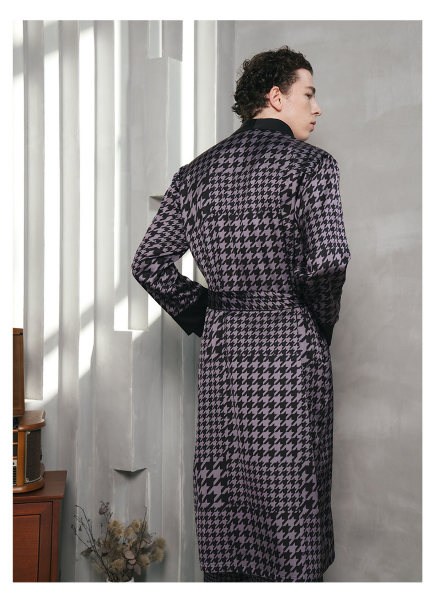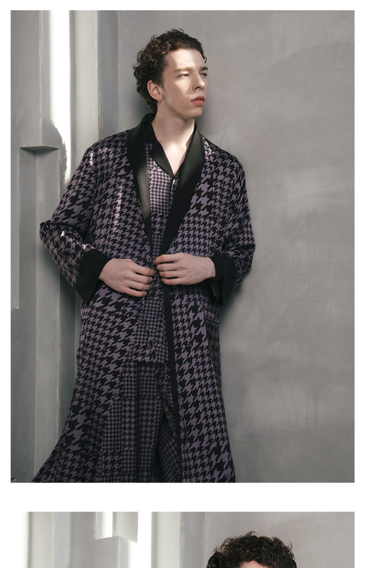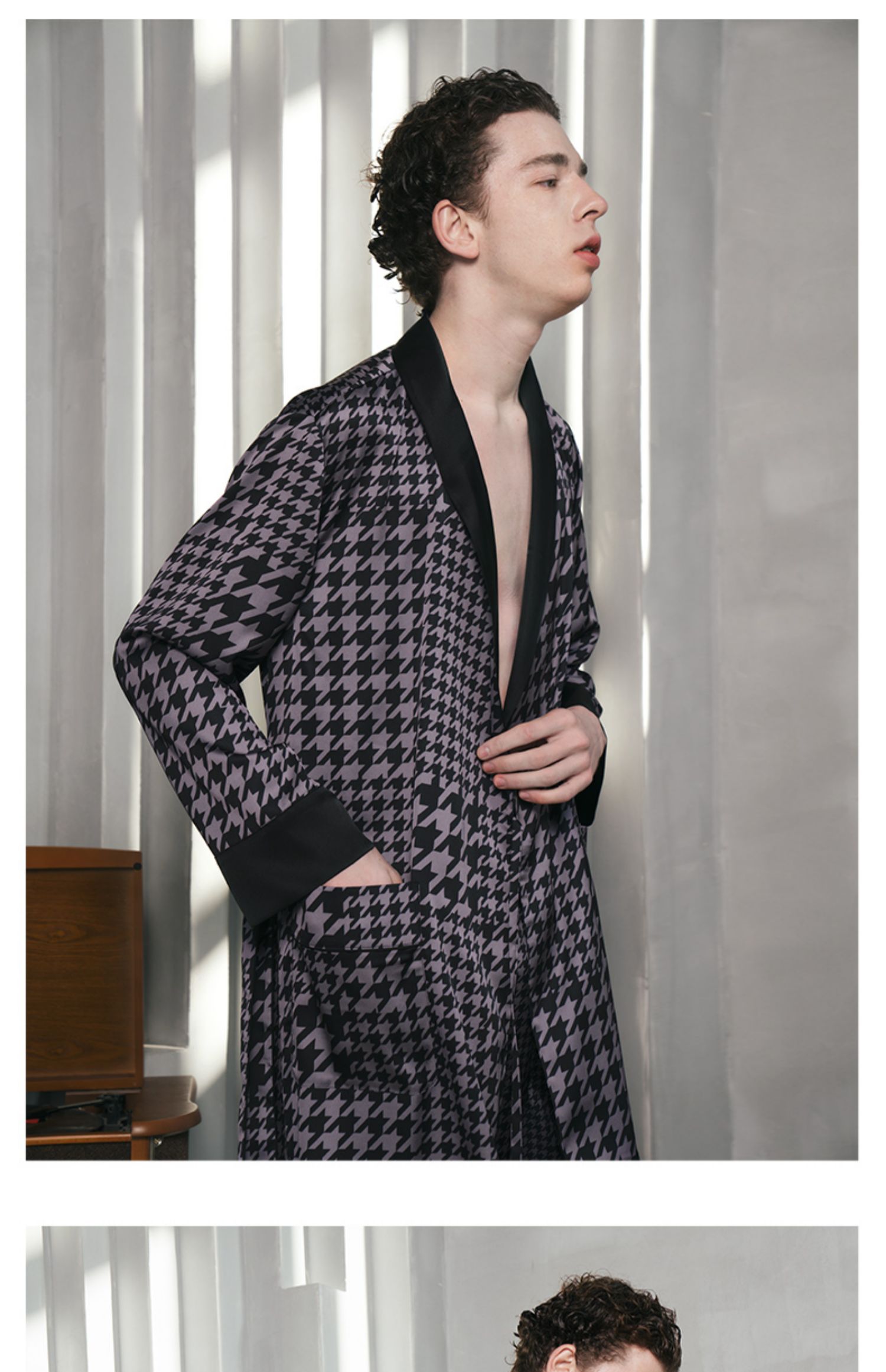 Solo seta22姆米秋冬真丝睡袍男士丝绸家居服中长款晨袍睡衣