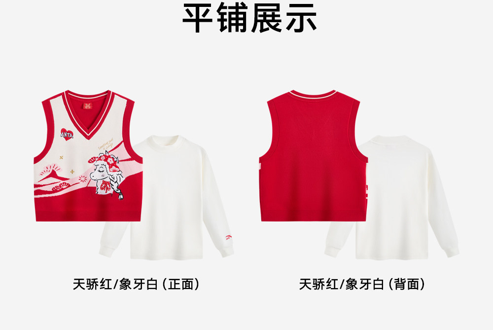 安踏儿童26新款马年限定新年款两件套套头衫可爱百搭时尚舒适亲肤362618613