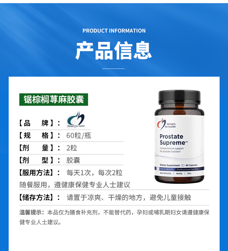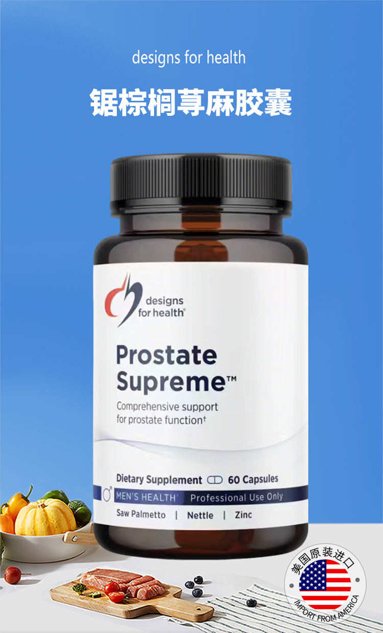 【效期至27年1月】锯棕榈荨麻胶囊 Designs for health Prostate Supreme™ caps* 60粒/瓶