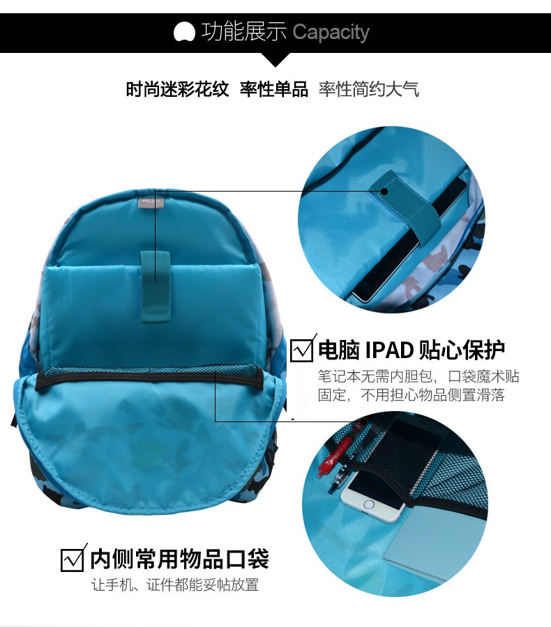 DELSEY原法国大使 双肩包迷彩包休闲时尚 3718 蓝色迷彩