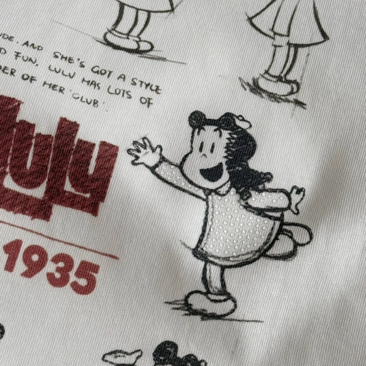 从蹦蹦跳跳到搞怪鬼脸每一个小表情都活灵活现中间的复古字体+1935年份标直接把美式复古氛围拉满了