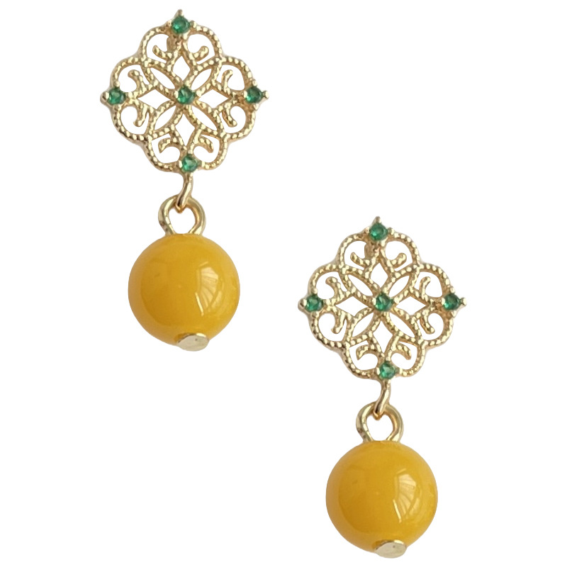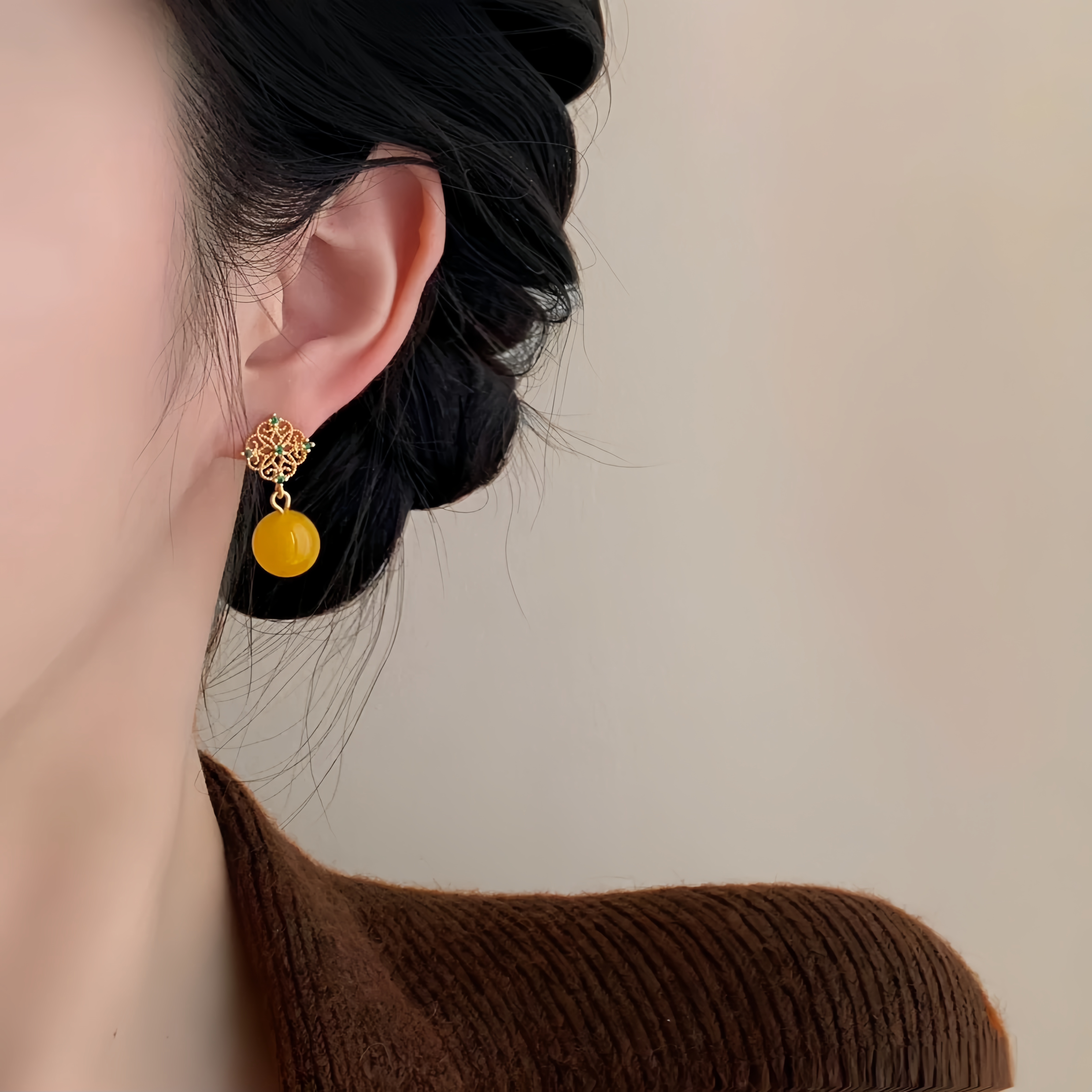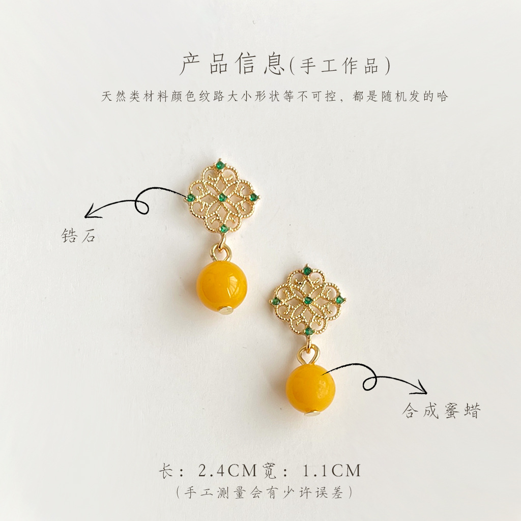 【品名】敦煌菱形纹仿蜜蜡耳坠