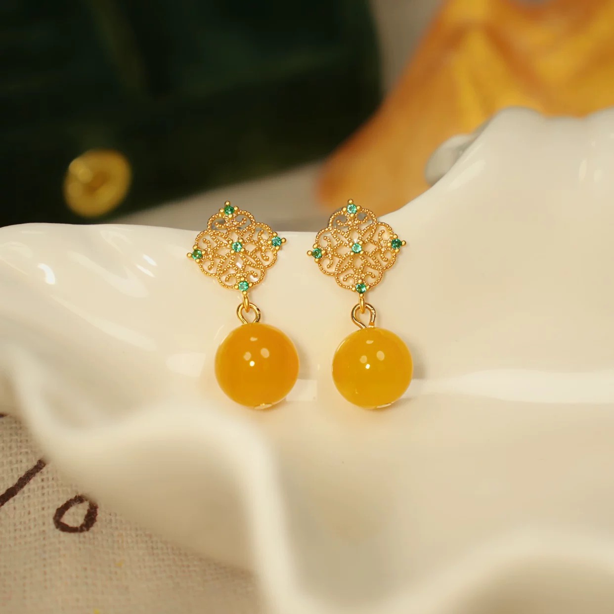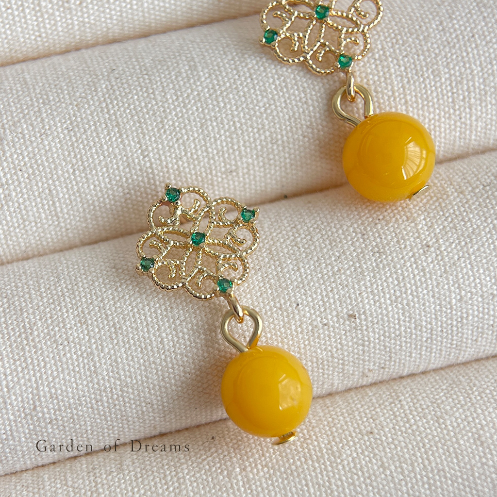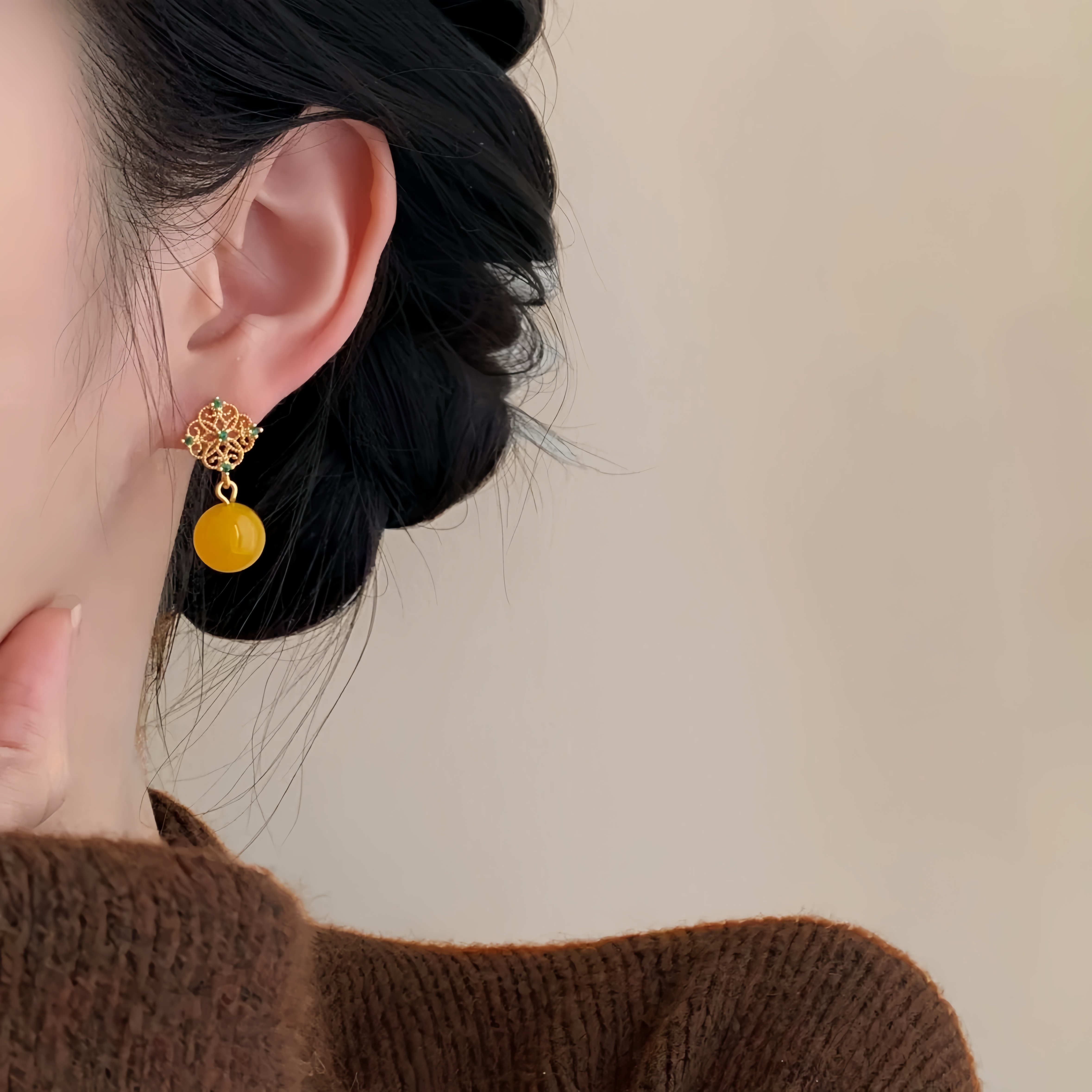【品名】敦煌菱形纹仿蜜蜡耳坠