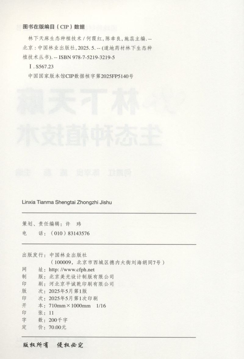 林下天麻生态种植技术(道地药材林下生态种植技术丛书) &3219