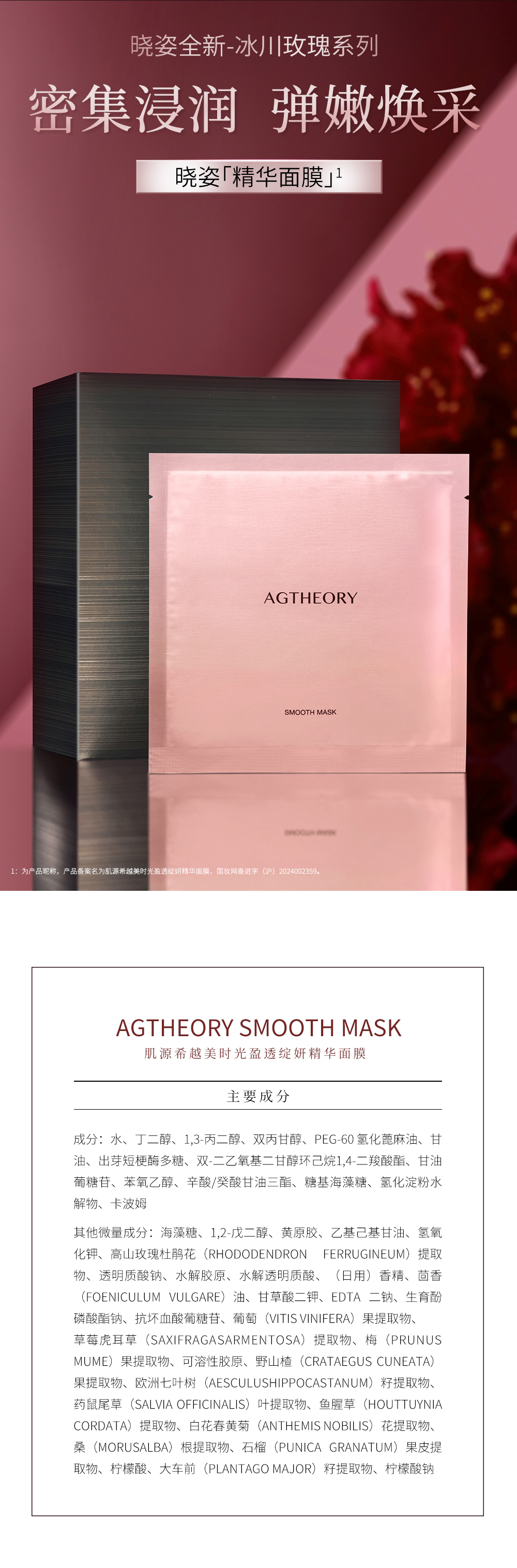 【礼想心动】晓姿 冰川玫瑰系列 肌源希 越美时光盈透绽妍精华面膜 5枚/盒
