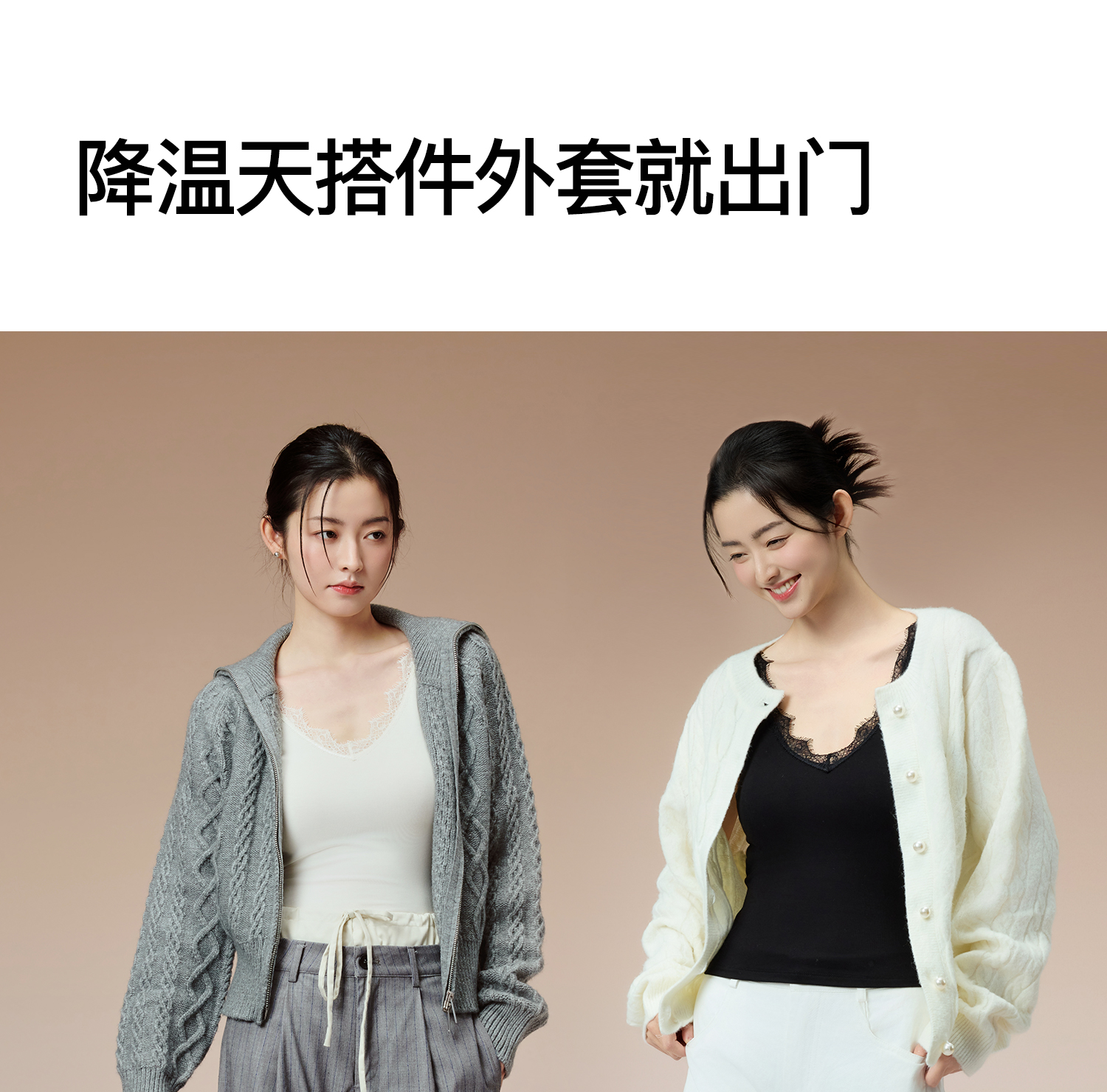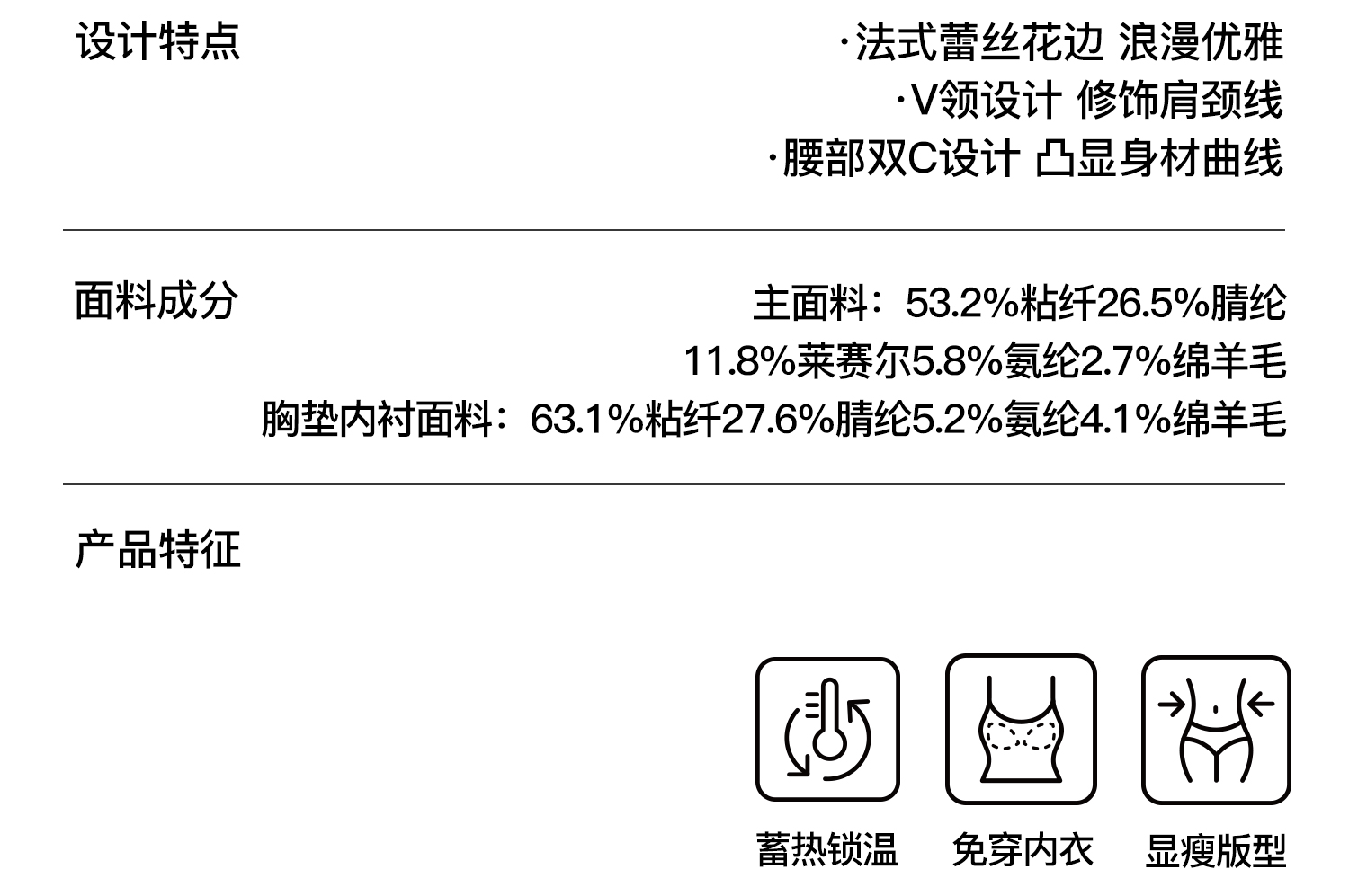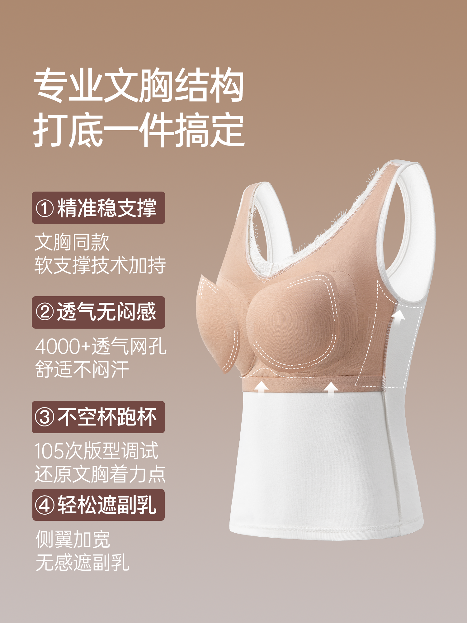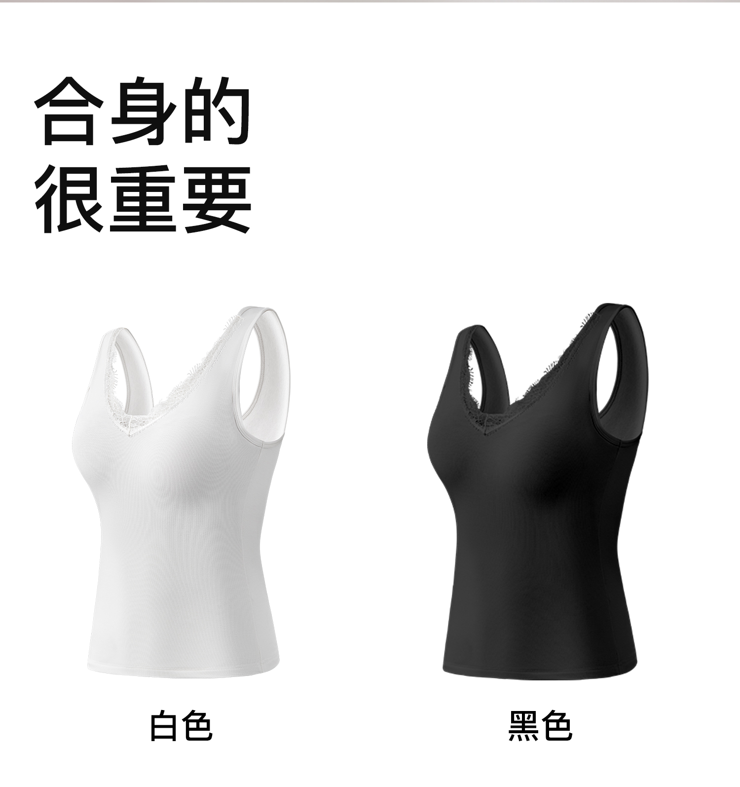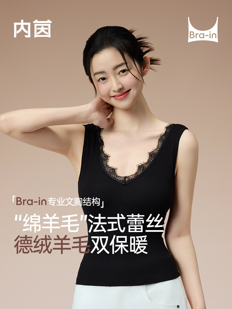 严选 | 内茵羊毛保暖带胸垫背心 蕾丝边女士秋冬内搭