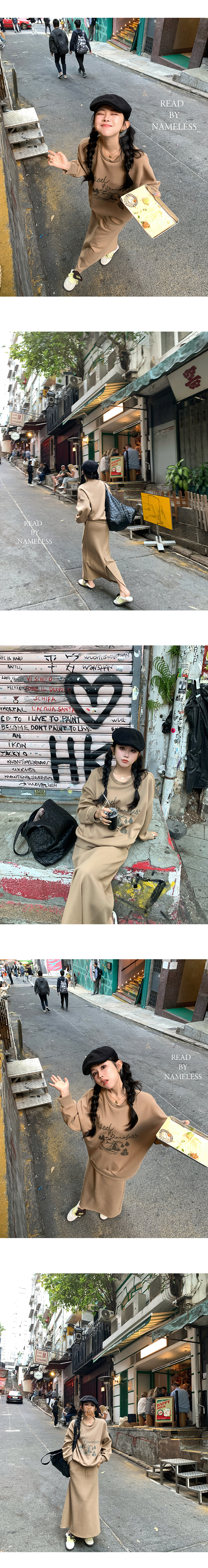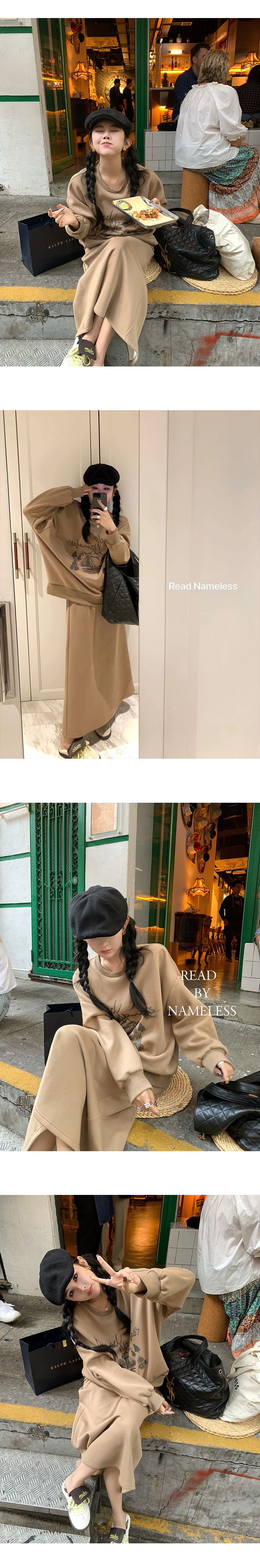Read Nameless /独家品牌面料咖色logo套装裙