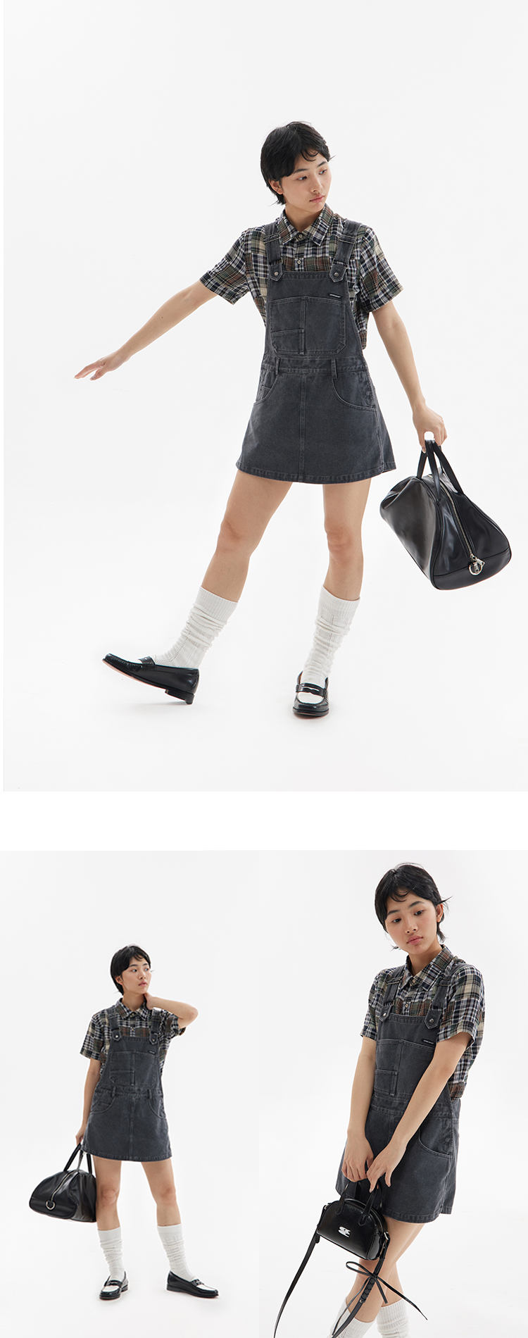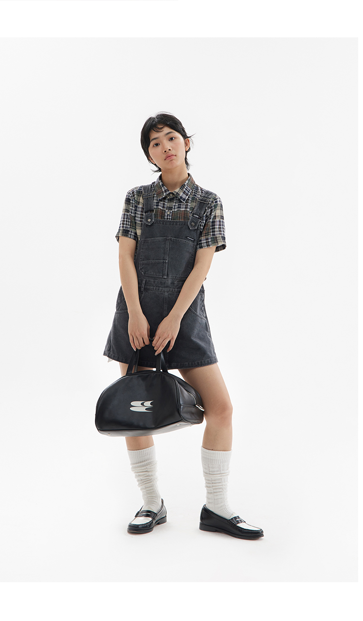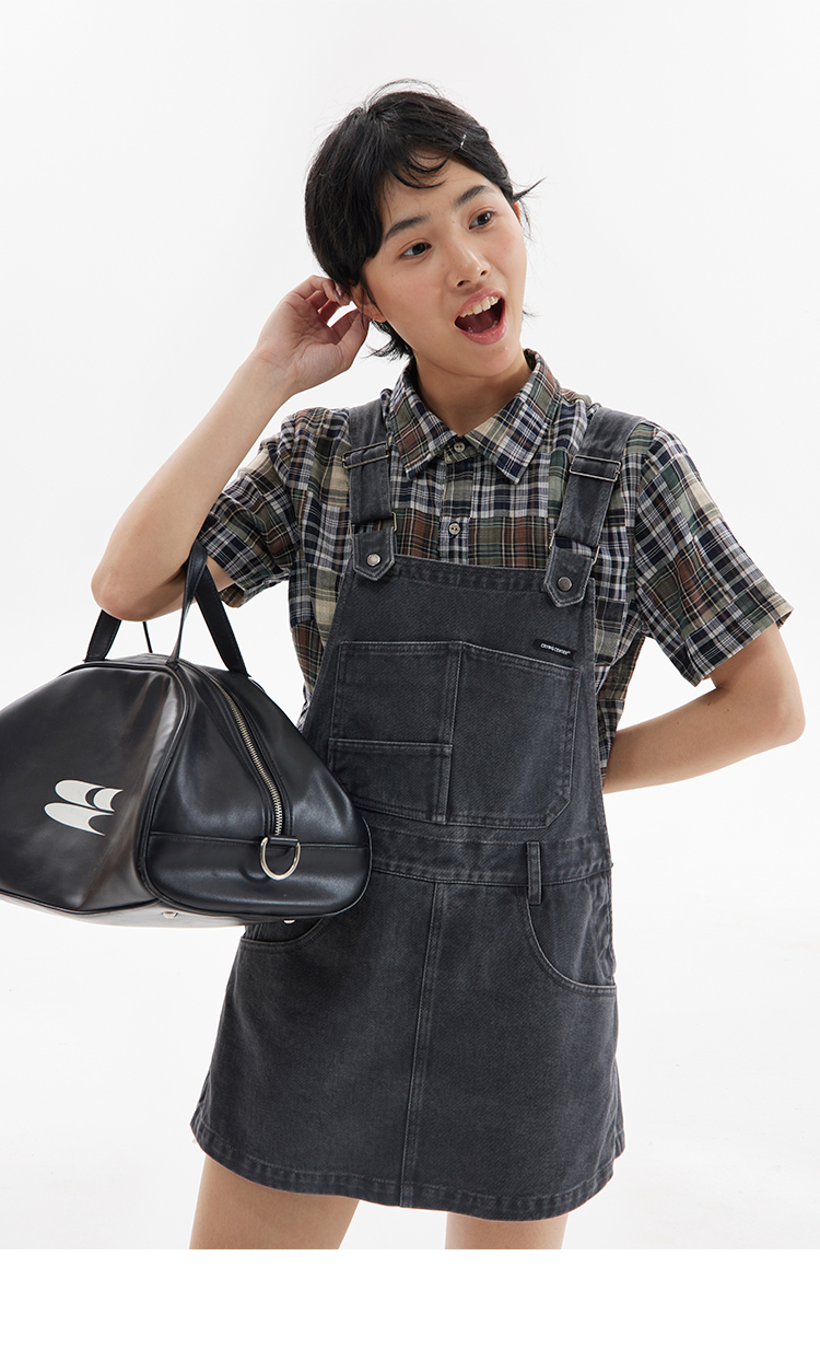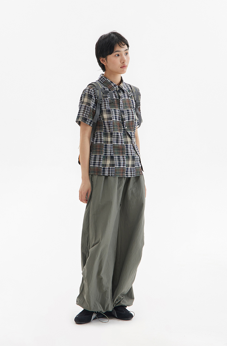 CryingCenter 复古拼接格纹斜向门襟短袖衬衫 哭喊中心