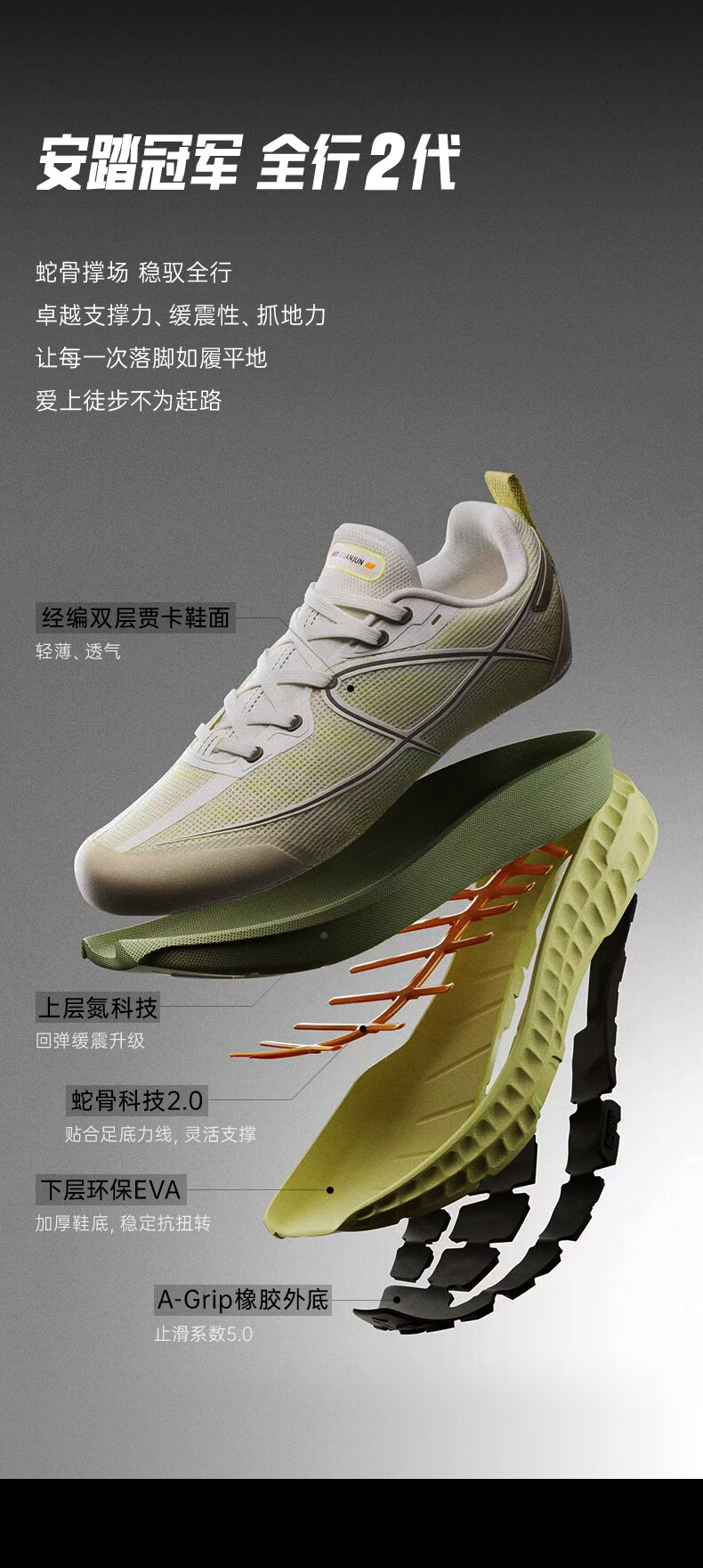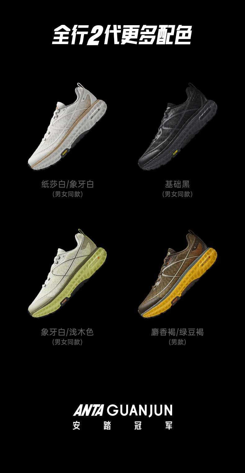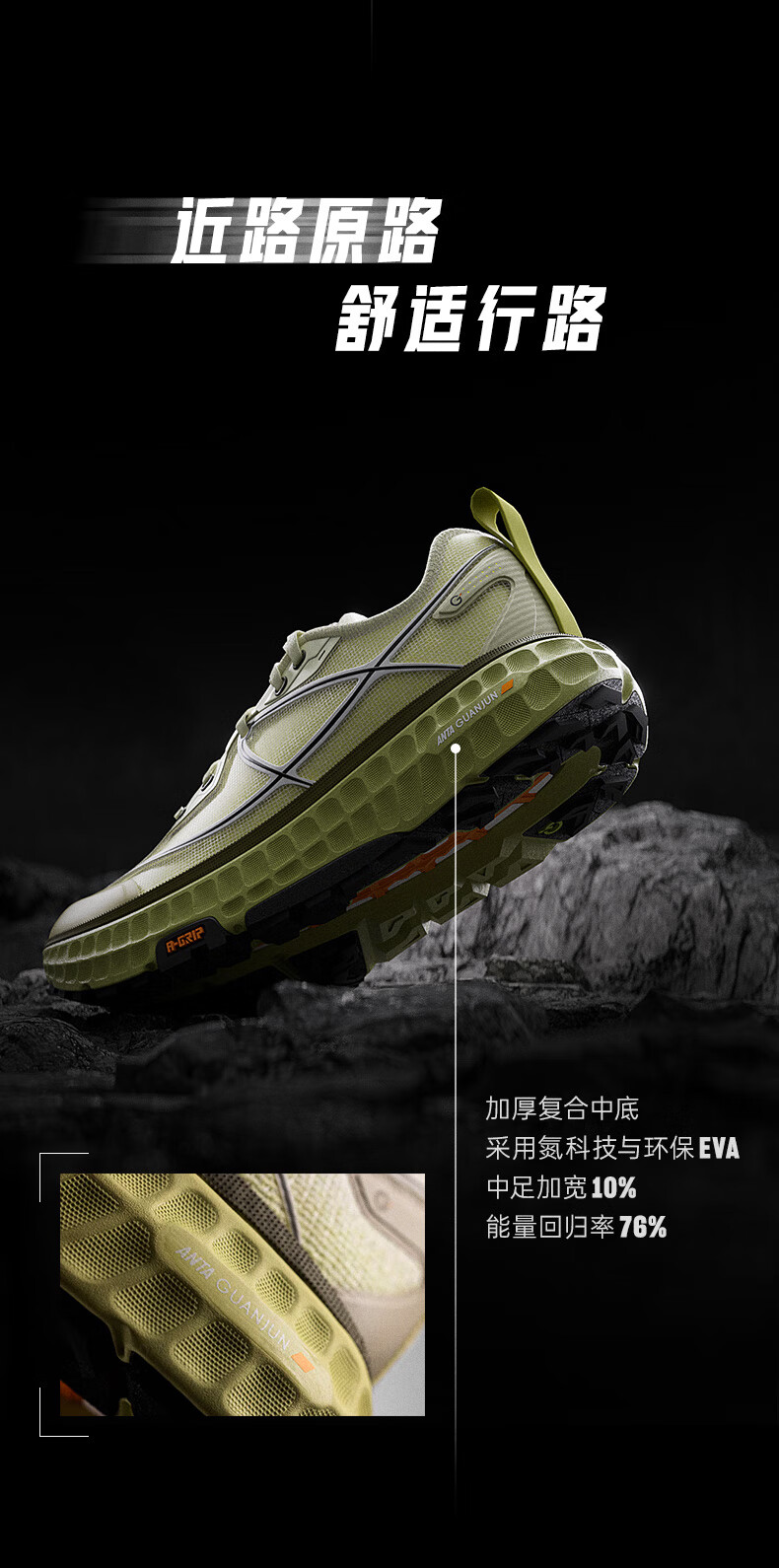 安踏冠军全行2代丨户外徒步鞋透气双密度女士防滑缓震跑鞋122535534A