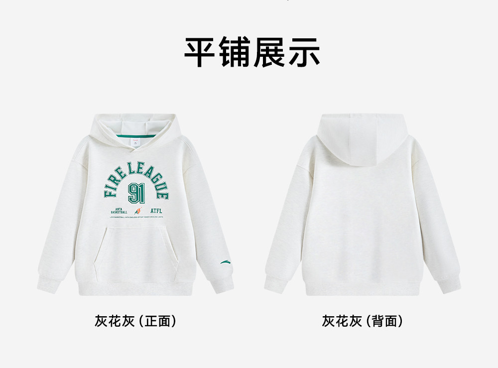 安踏儿童男大童针织连帽套头衫2026年新款舒适亲肤中大童运动卫衣352621725