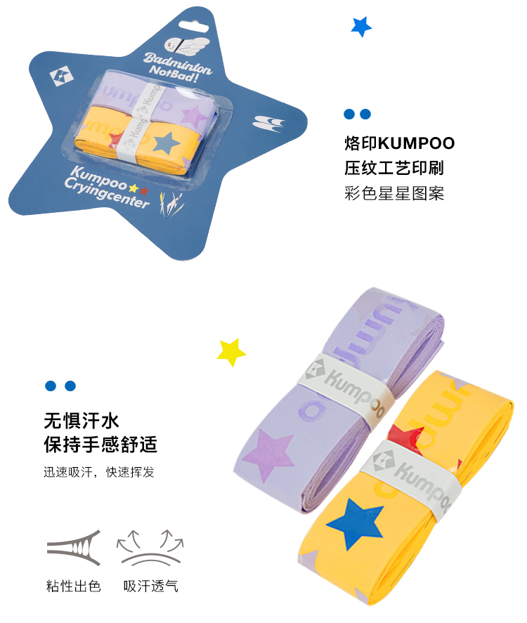 CryingCenterkumpoo薰风羽毛球联名系列 星星双色手胶吸汗带