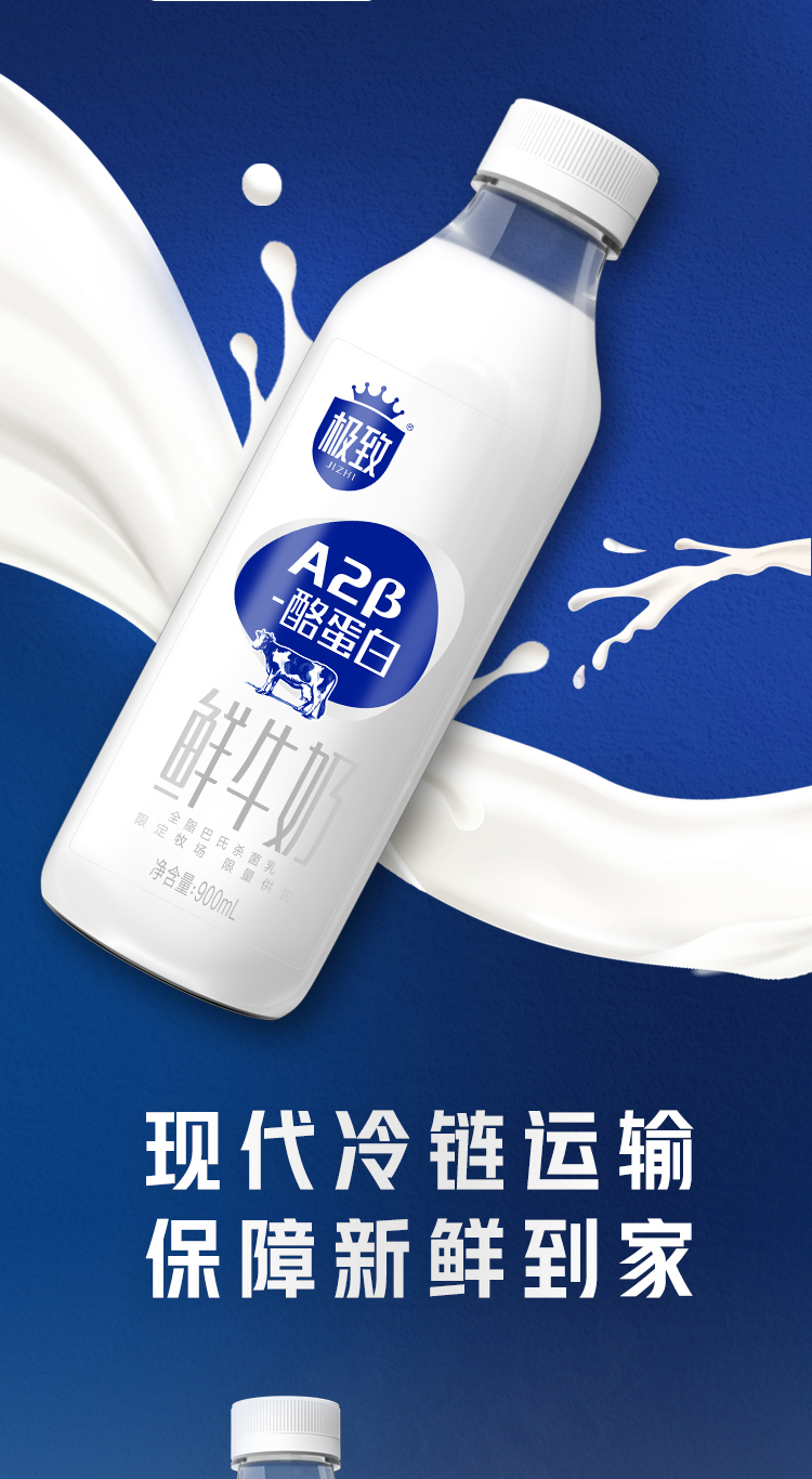 【自提-低温】极致A2β-酪蛋白鲜牛奶900ml*6
