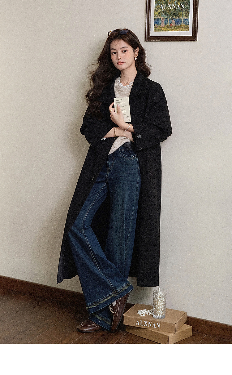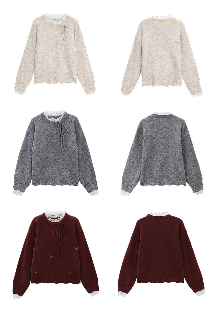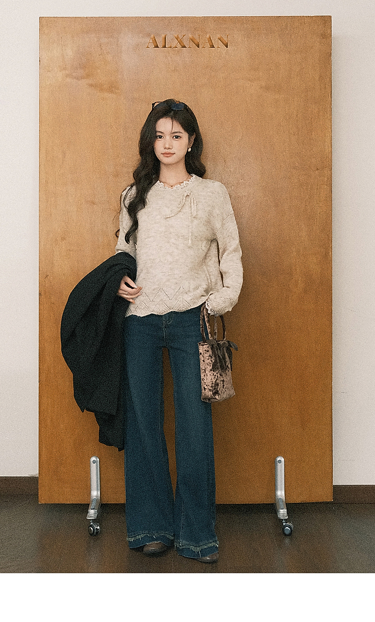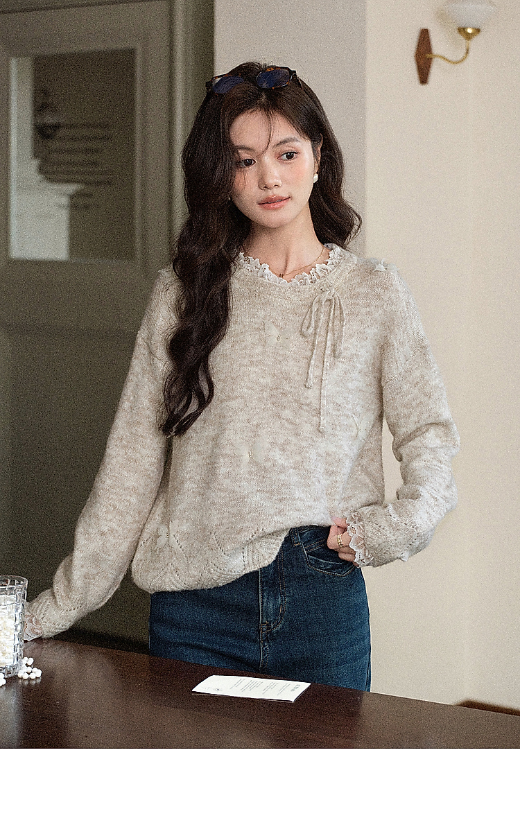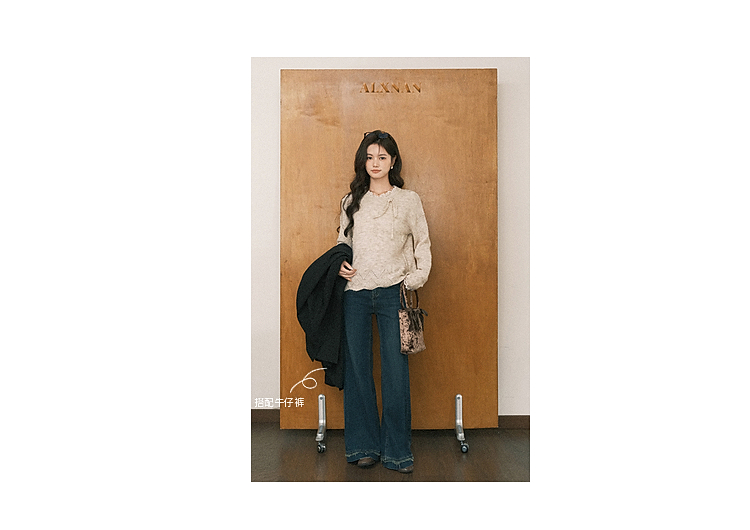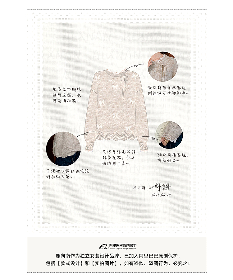 鹿向南「云絮蝶梦」燕麦色宽松长袖内搭针织衫毛衣女秋冬羊毛上衣