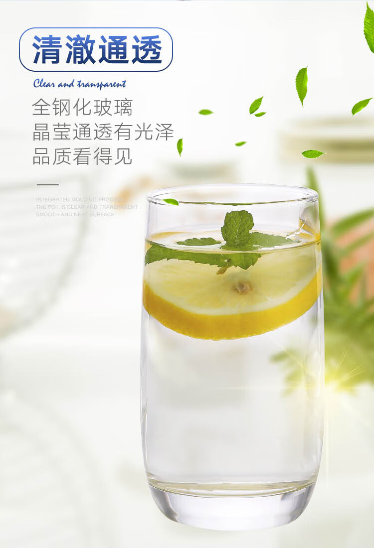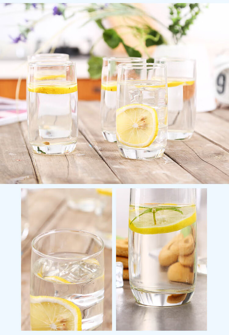 乐美雅(Luminarc)玻璃杯直身杯水杯茶杯凉白开水杯子牛奶果汁杯奶茶饮料杯290ml*6只装_MW