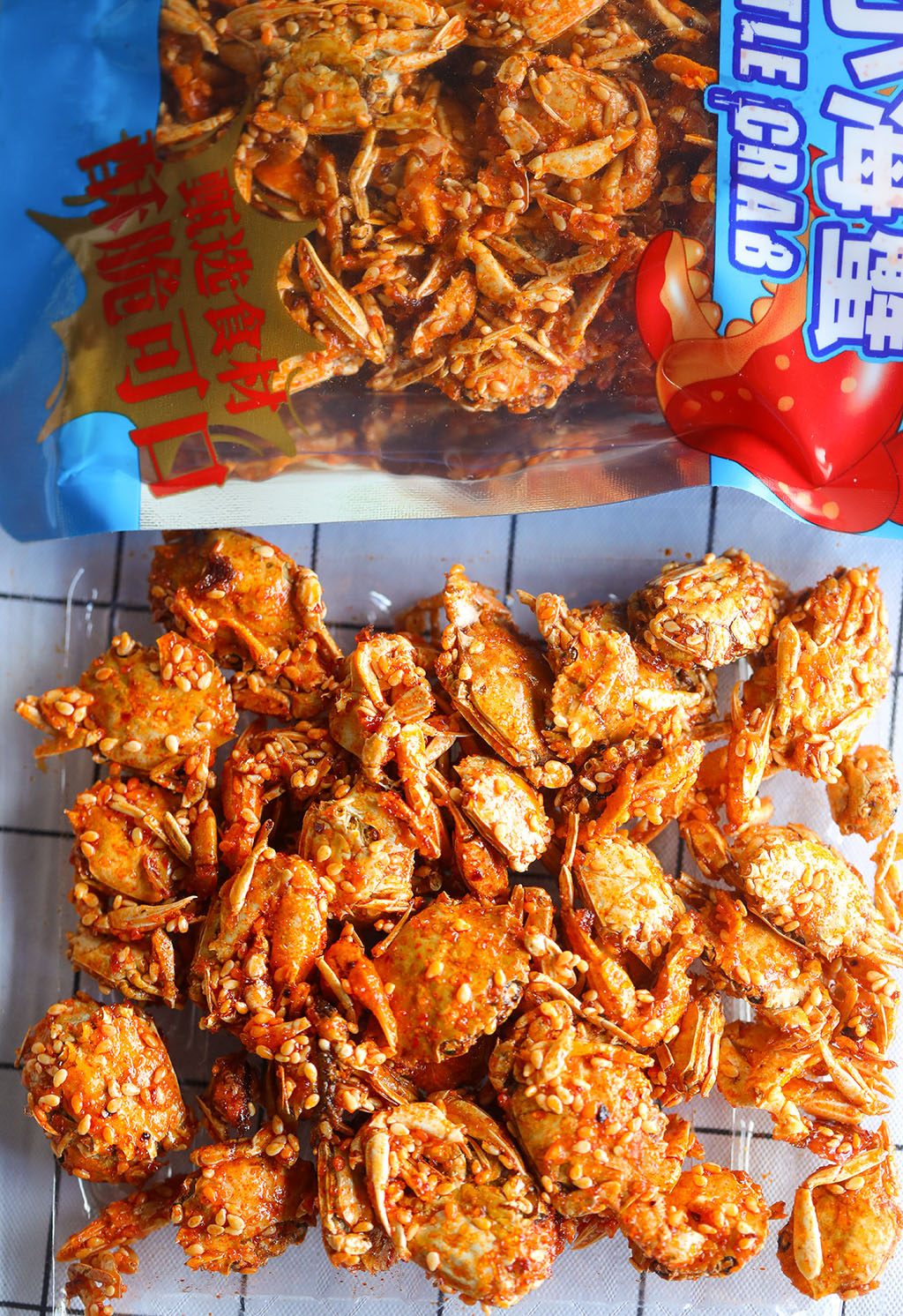 【天天好日子香辣小海蟹/小海虾/琵琶虾】29.9到手五包!!⚡甜辣脑袋都来试试这个零食小海蟹,每一个螃蟹都裹满了料,一点都不腥,口感吃起来也是酥酥脆脆的,越嚼越香