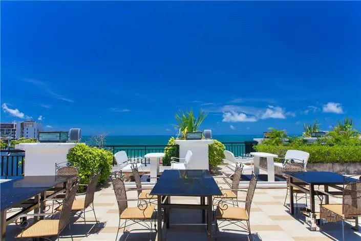 餐厅位于酒店顶楼,拥有三亚湾最美的海景,分厅内休闲餐厅和厅外观海餐厅。