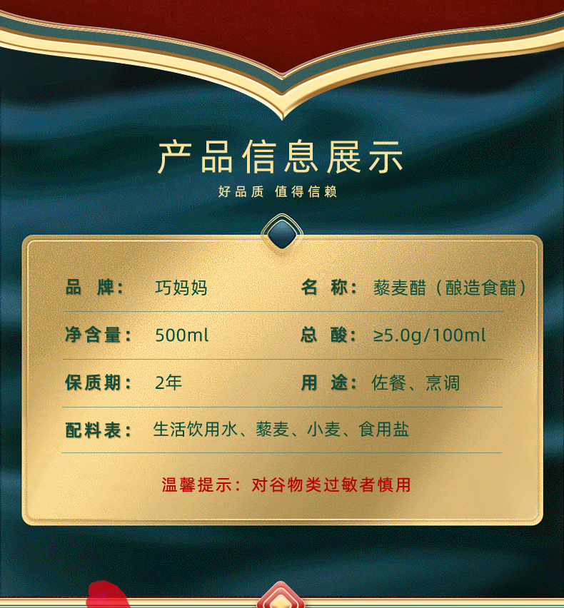 巧妈妈藜麦醋500ml