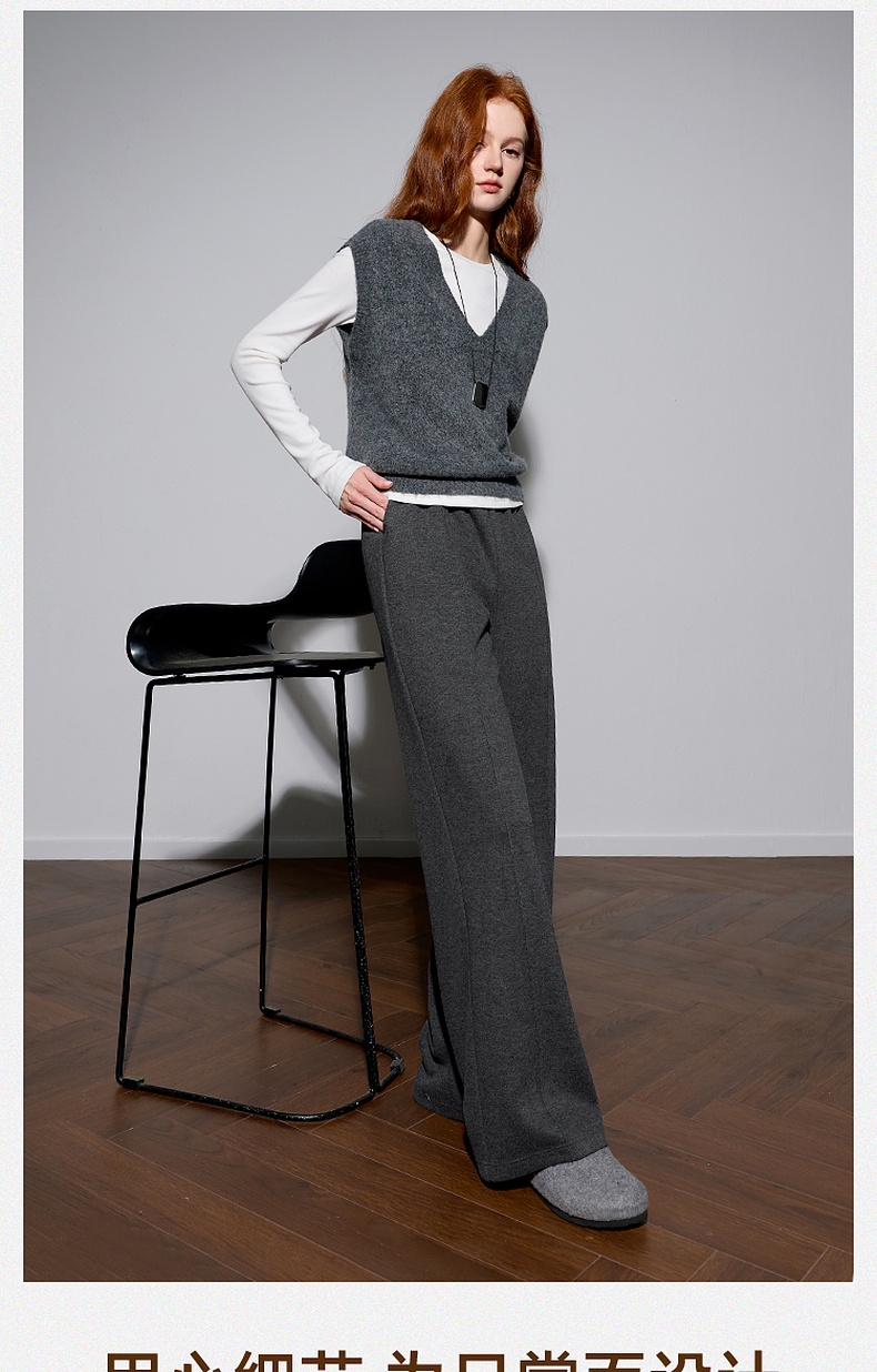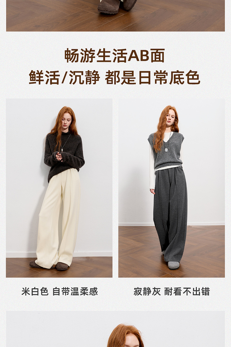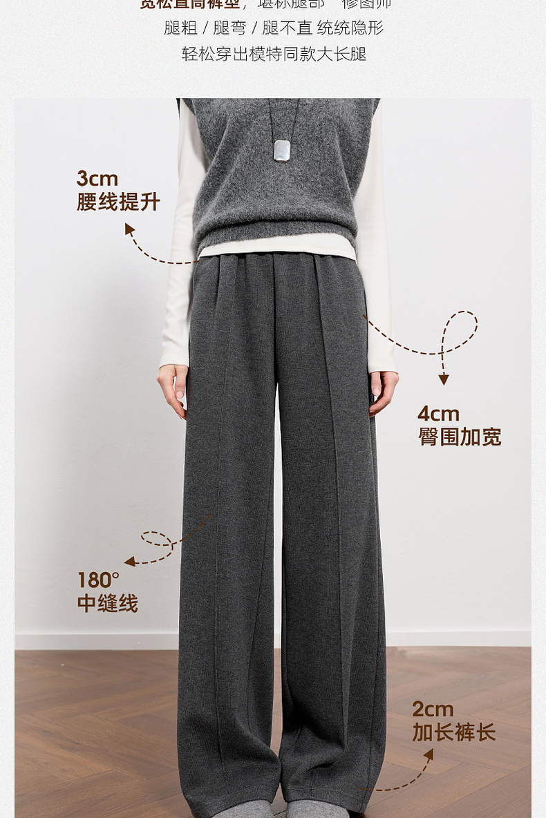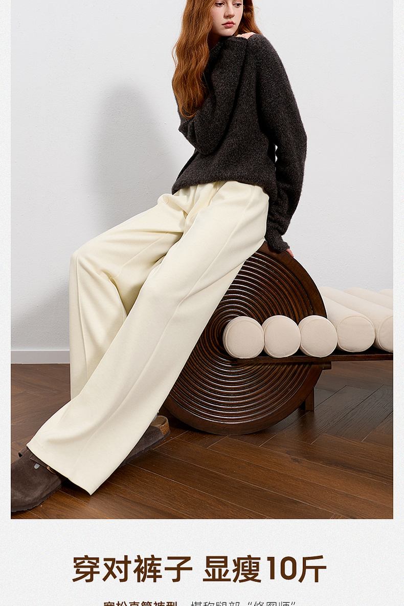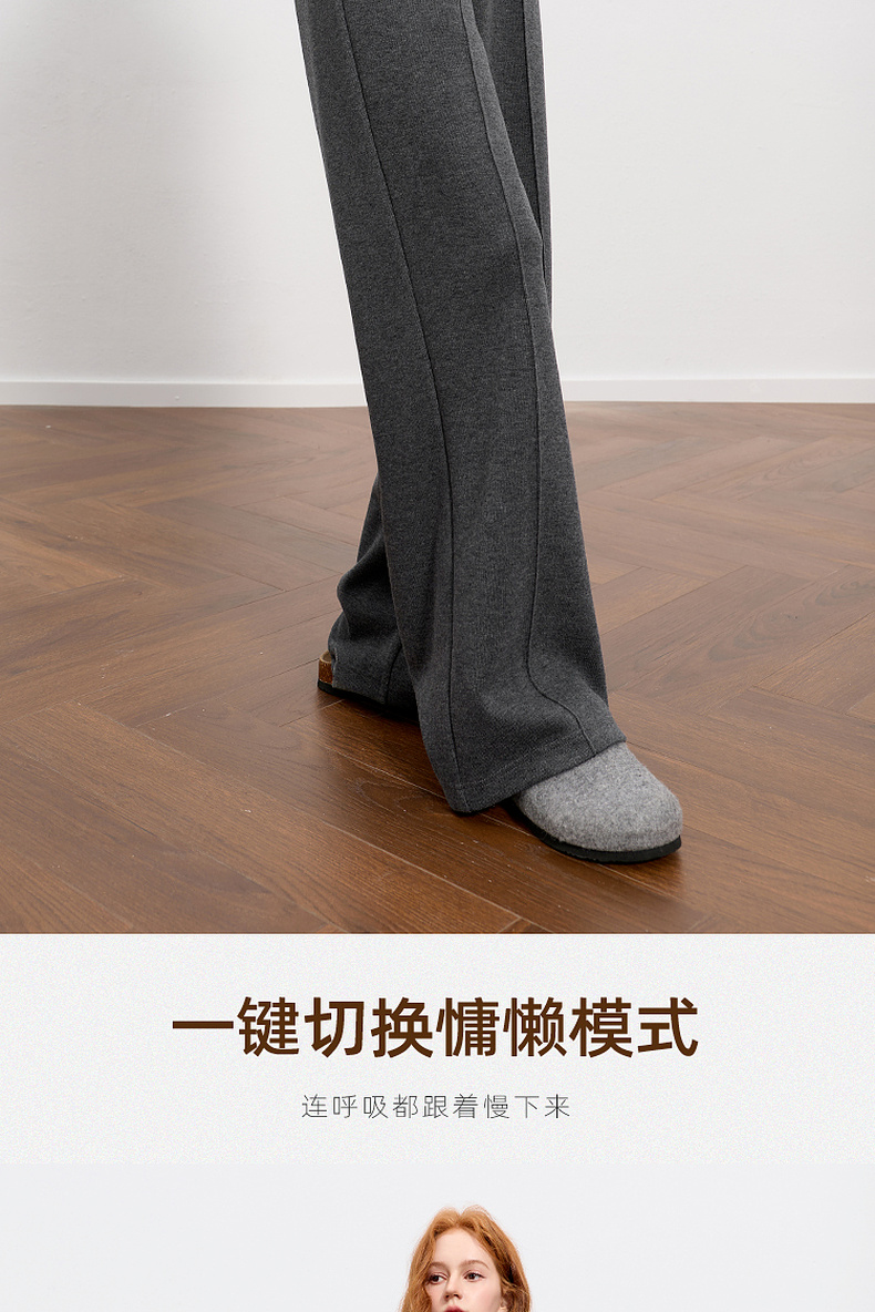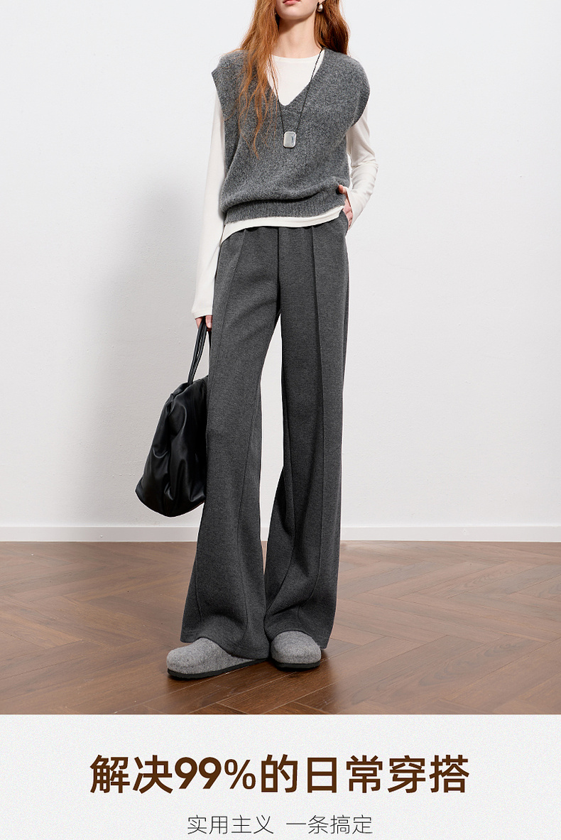 三彩2026春季新款休闲裤松紧腰宽松直筒裤长裤简约M