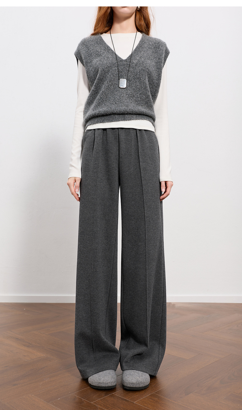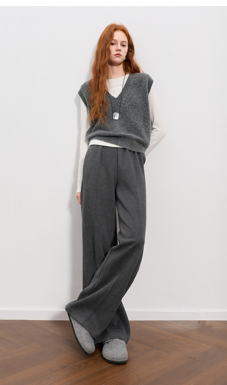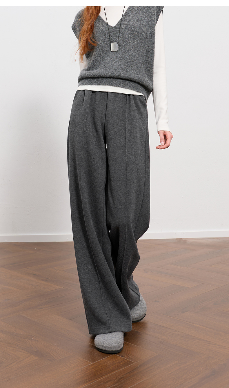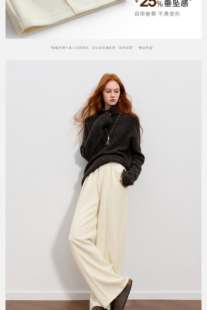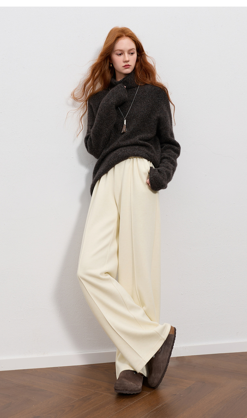 三彩2026春季新款休闲裤松紧腰宽松直筒裤长裤简约M