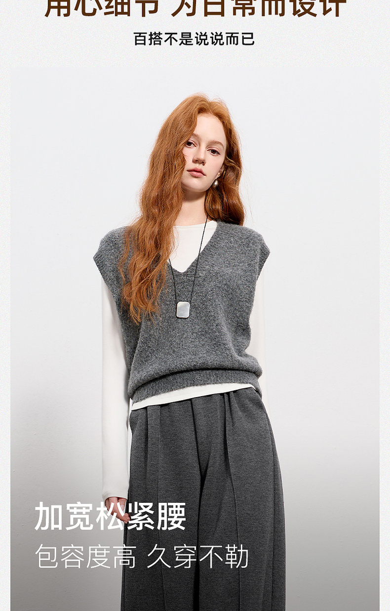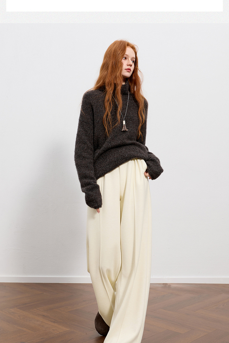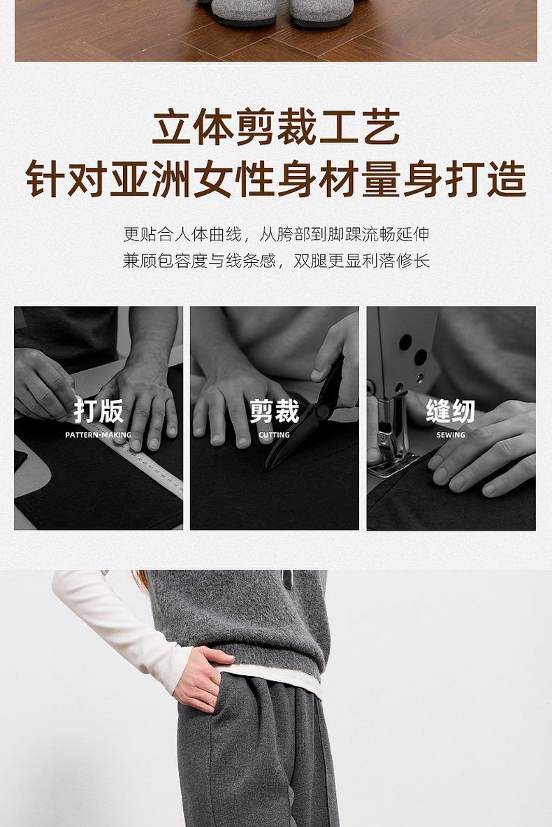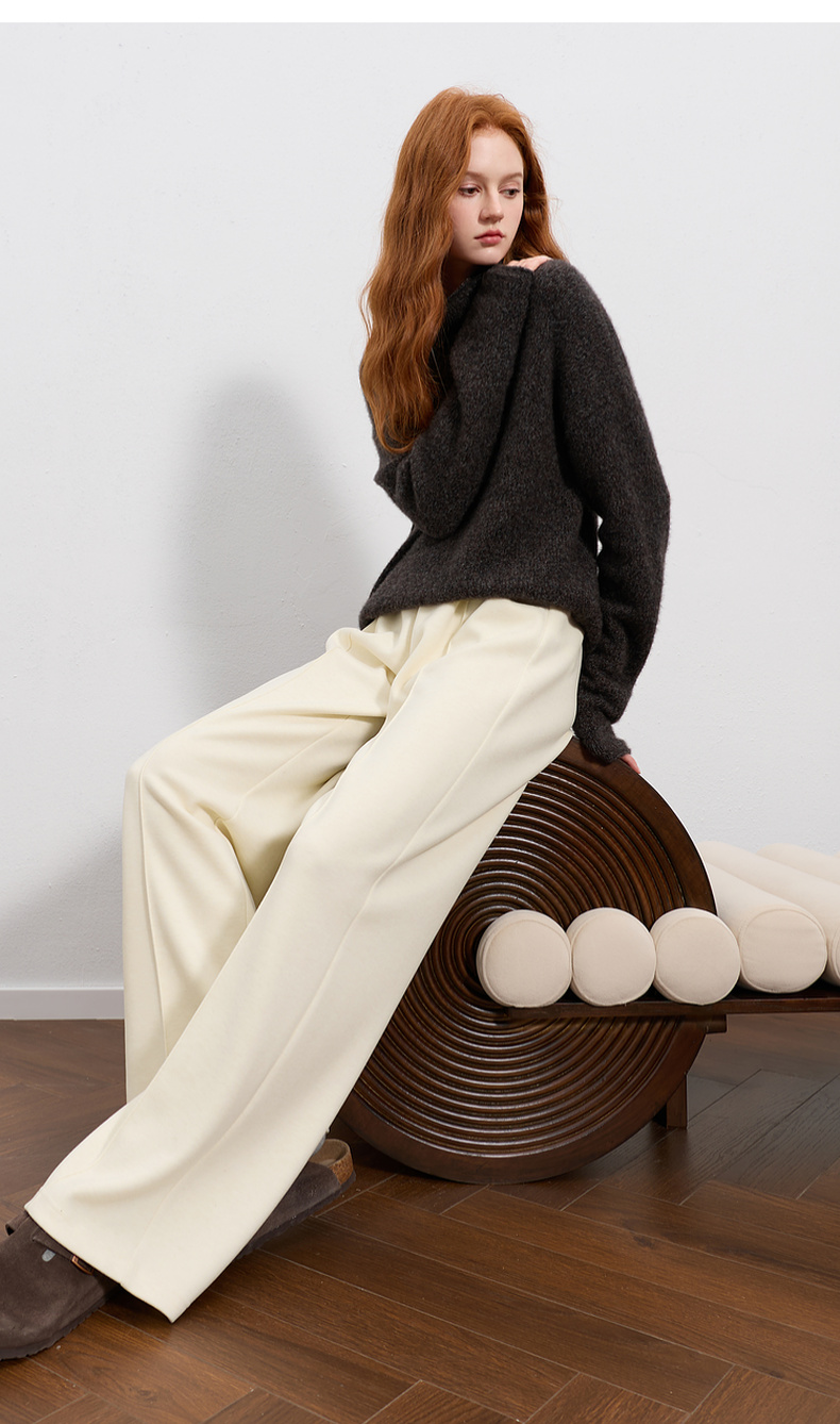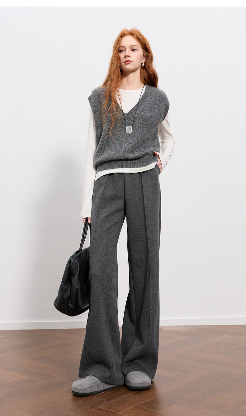 三彩2026春季新款休闲裤松紧腰宽松直筒裤长裤简约M