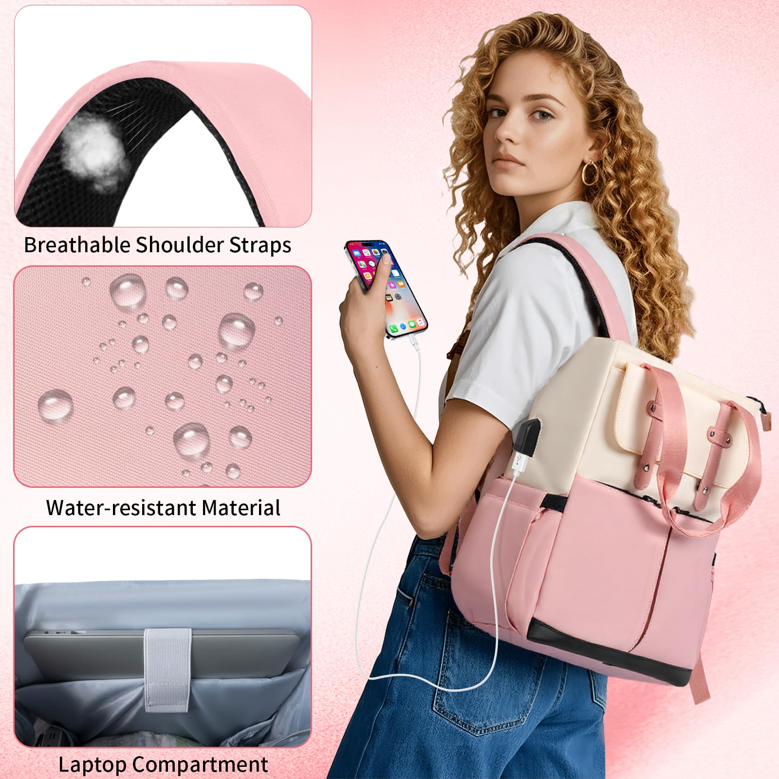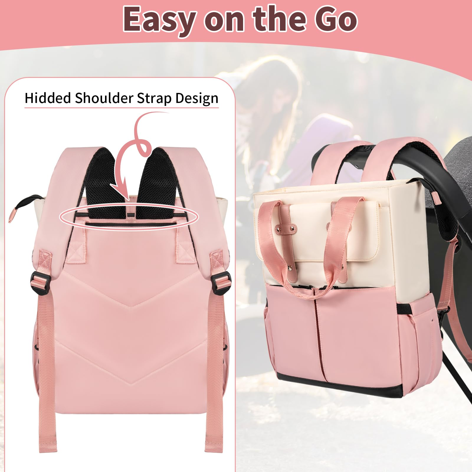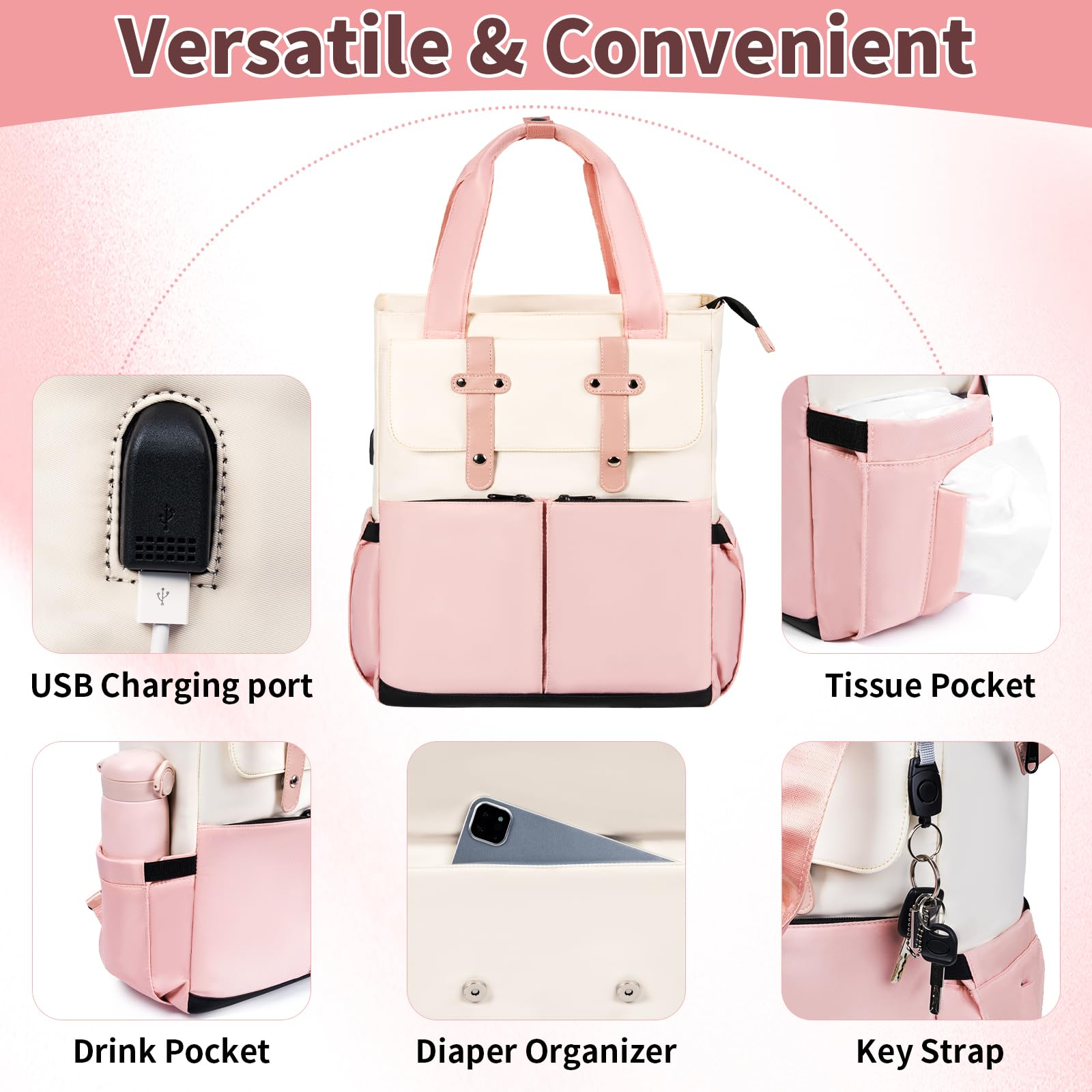 【多功能便捷】这款婴儿尿布包设计贴心周到,配备USB充电接口口袋、背部防盗口袋、可隐藏肩带口袋、侧面纸巾和水瓶口袋、内部15英寸笔记本电脑隔层以及超大主储物空间。