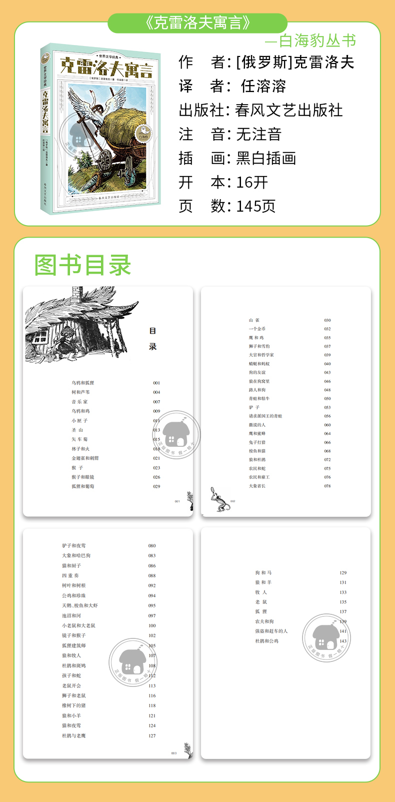 克雷洛夫寓言白海豹丛书[俄罗斯]克雷洛夫著/任溶溶译春风文艺出版社