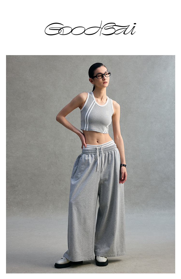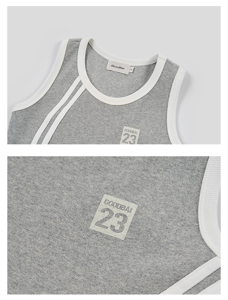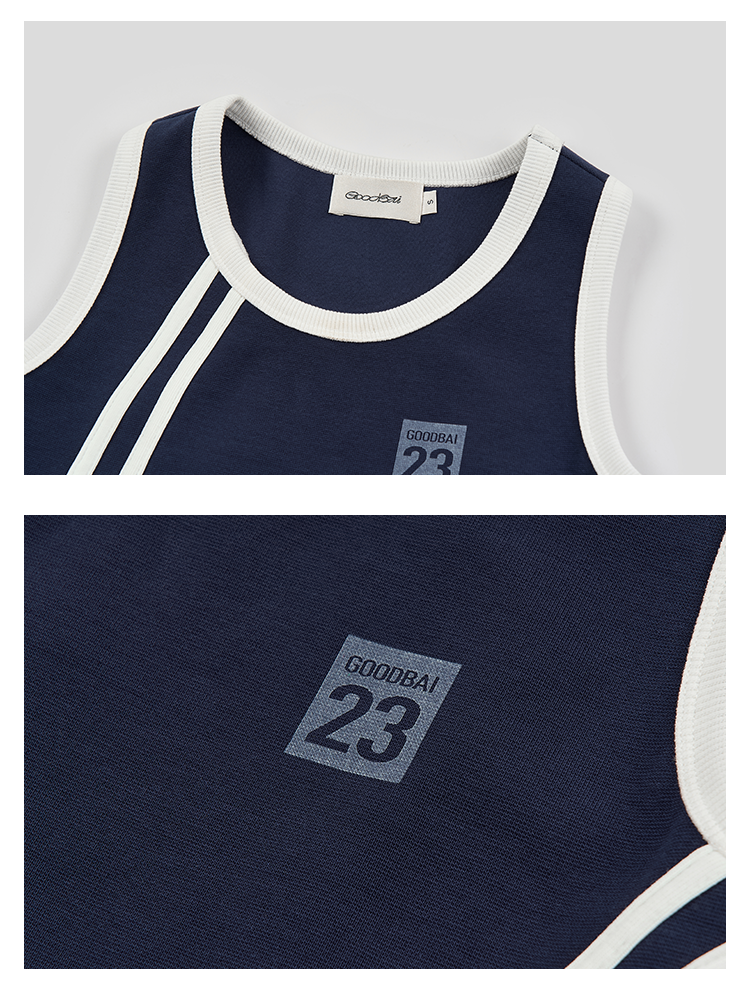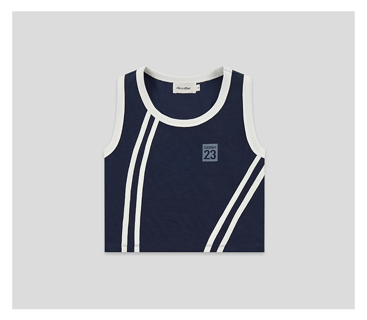 GOODBAI 23 logo编号不规则撞色织带圆领工字背心