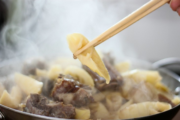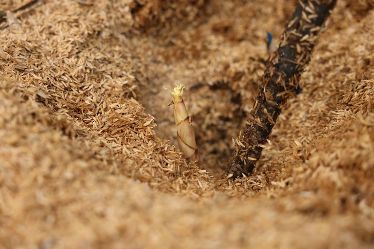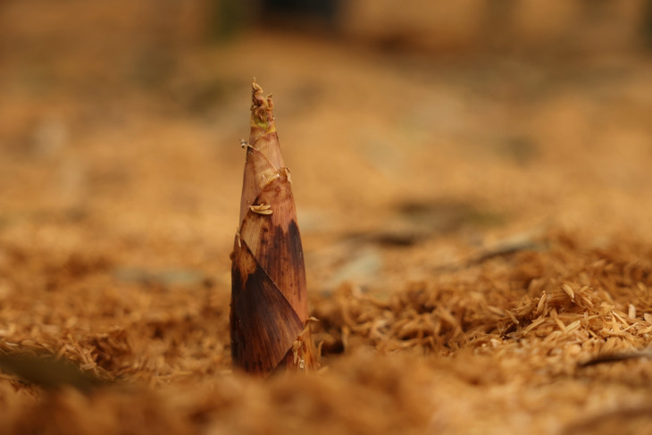 🏞 深山里的鲜笋哲学 ▌15cm稻糠被的秘密 村民用天然稻糠为雷笋"盖棉被",严寒中守护鲜嫩,让笋在低温中缓慢积累养分,成就脆嫩无渣的独特口感