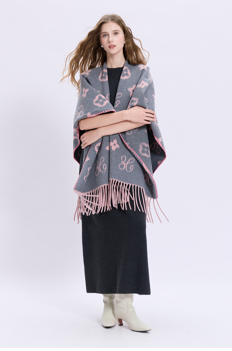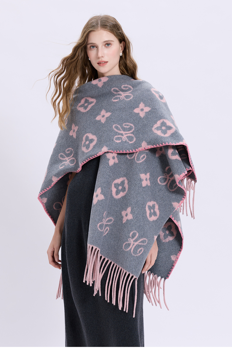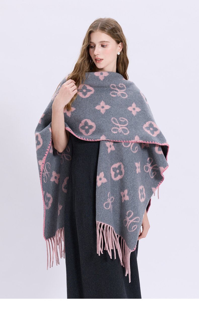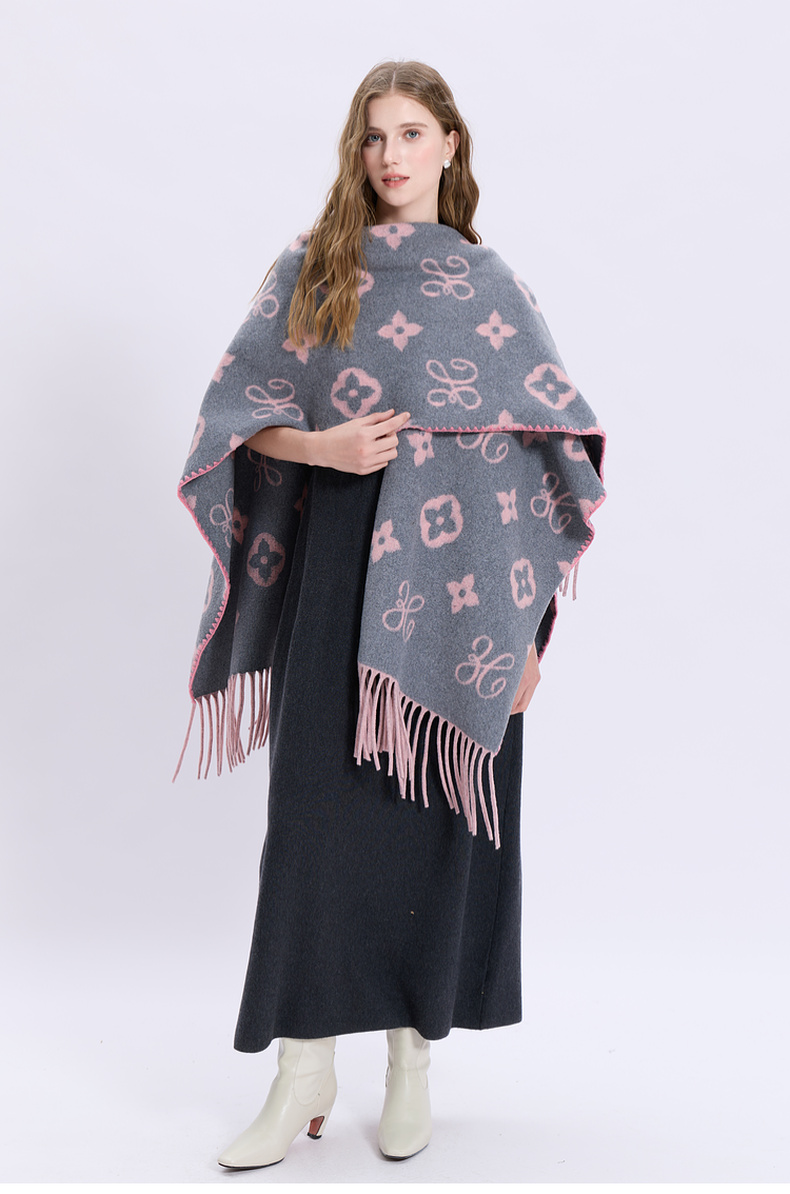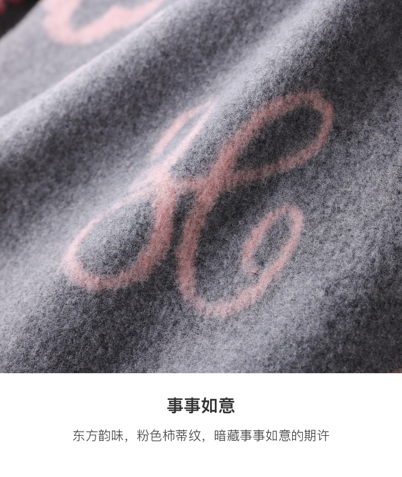 三彩2025新款国风柿蒂花纹大廓形外搭针织披肩流苏保暖旅行出片