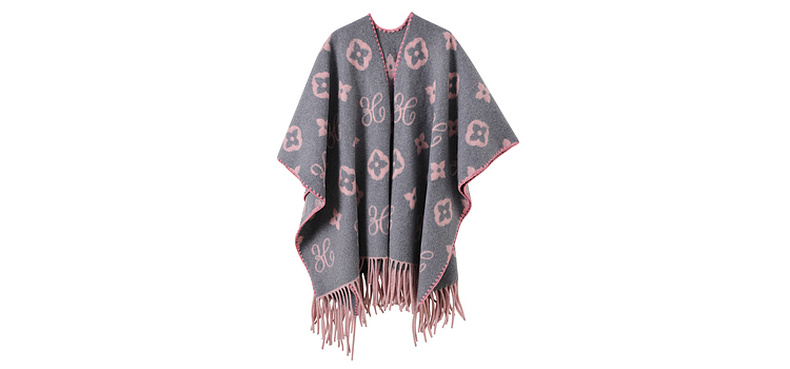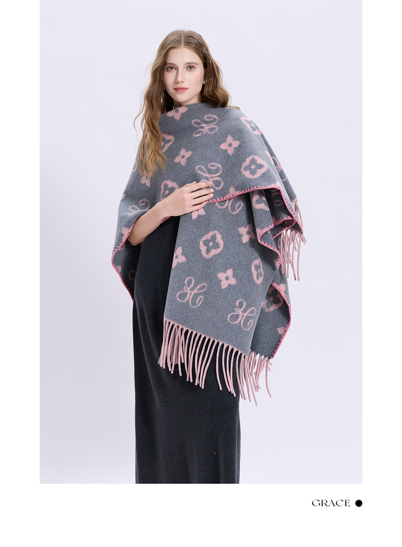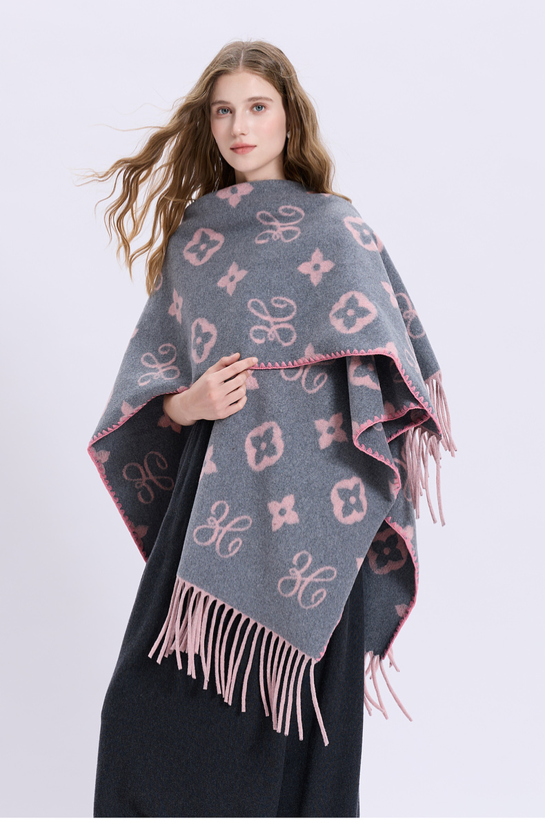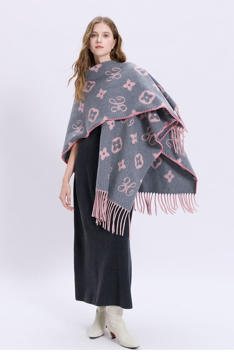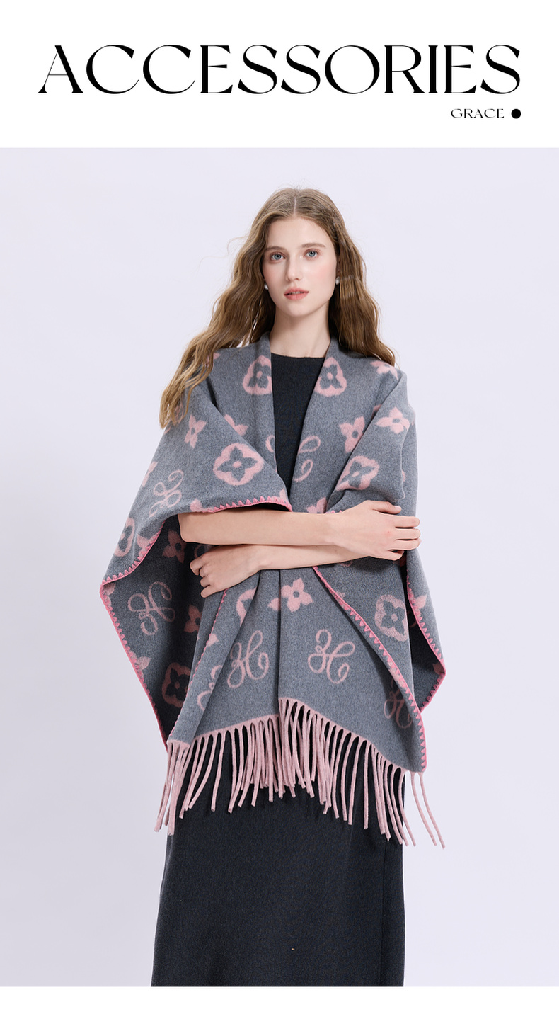三彩2025新款国风柿蒂花纹大廓形外搭针织披肩流苏保暖旅行出片