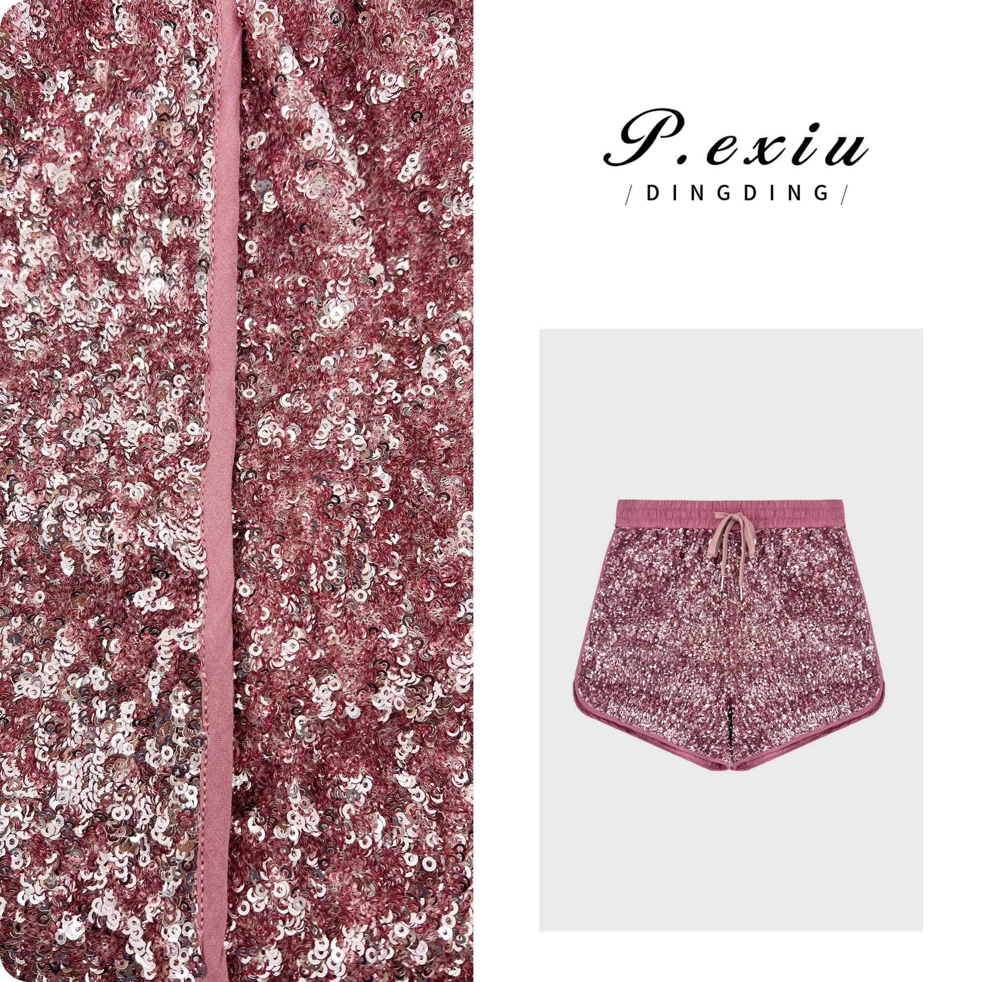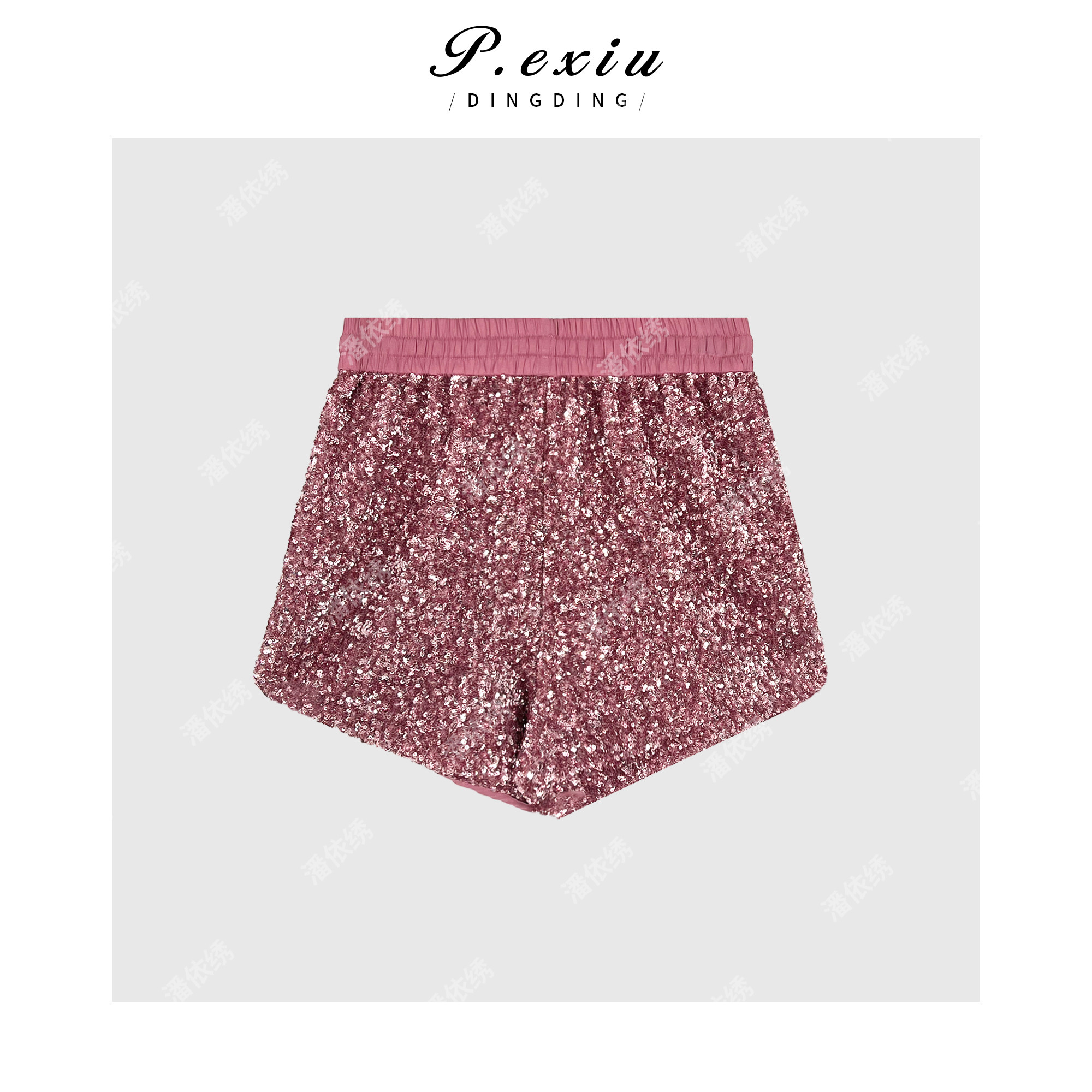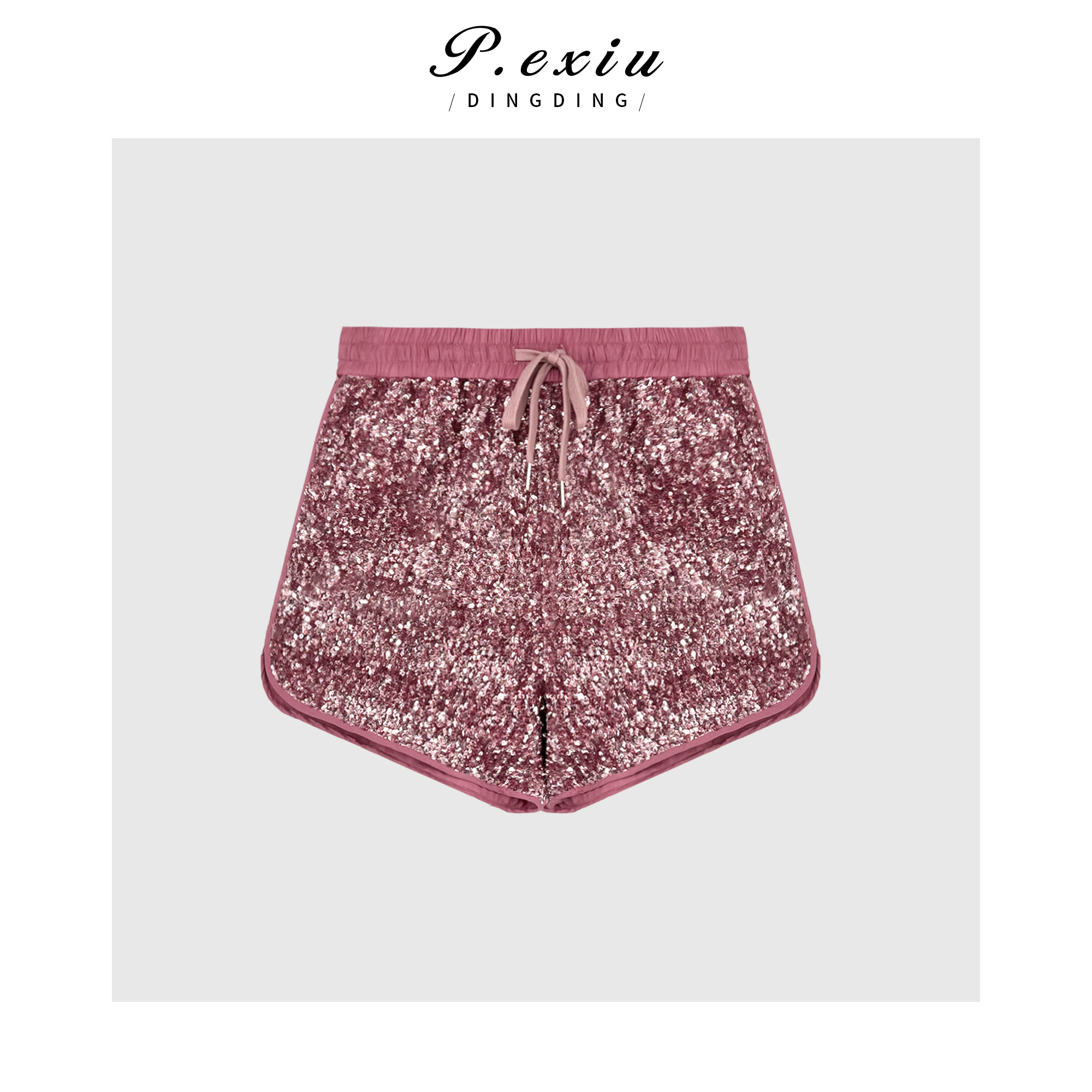 04-3潘依绣丁丁宠粉PanYiXiu/潘依绣【闪闪发光】时髦感小众复古亮片抽绳短裤 W-62096