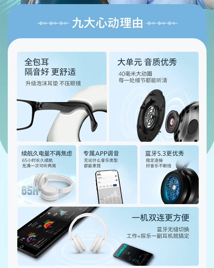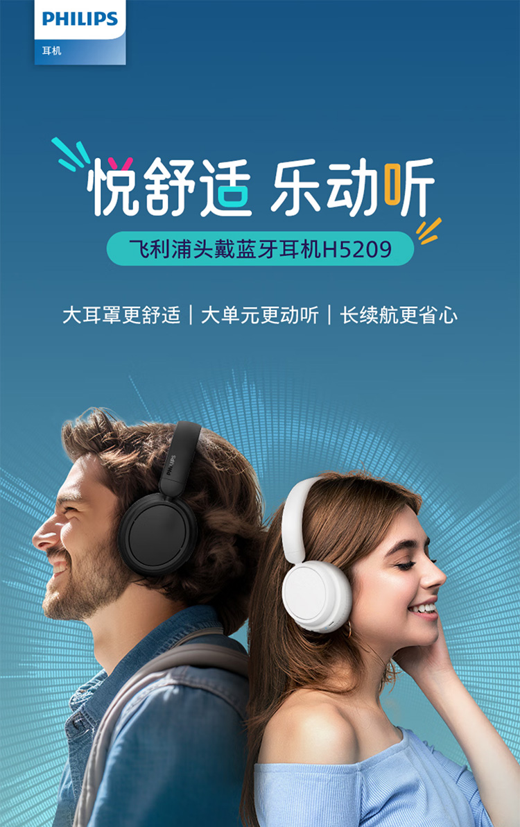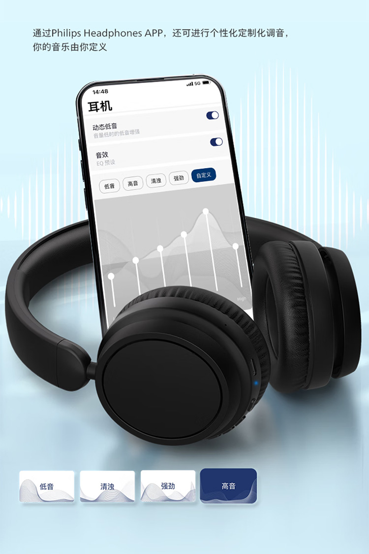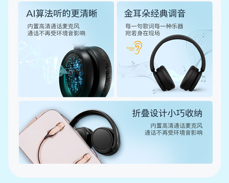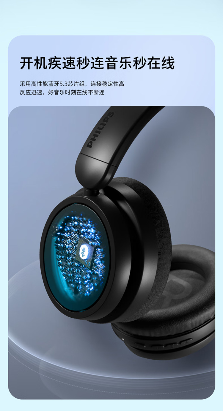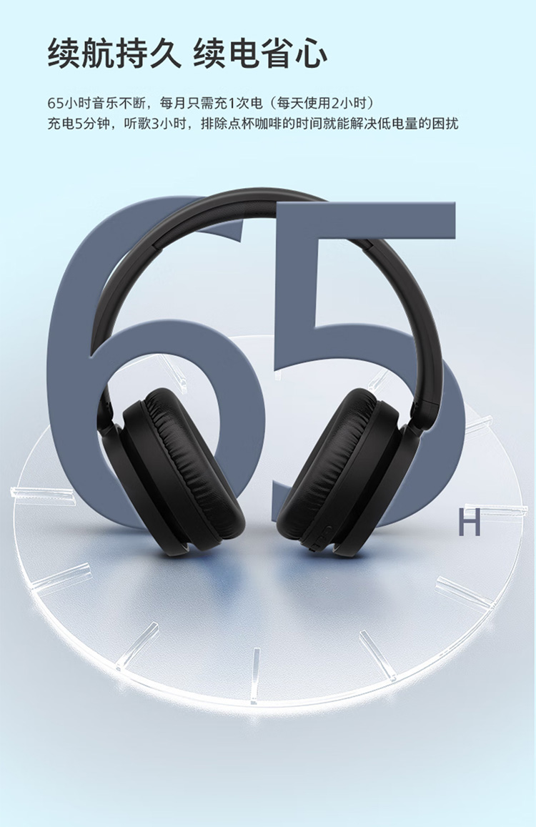 【E粉专享】飞利浦PHILIPS头戴式无线蓝牙耳机65小时续航通话降噪苹果华为小米安卓手机通用TAH5209黑色