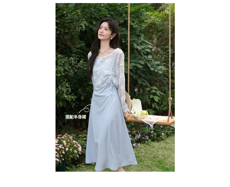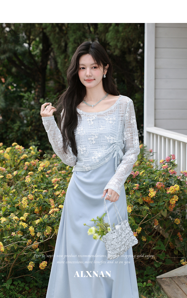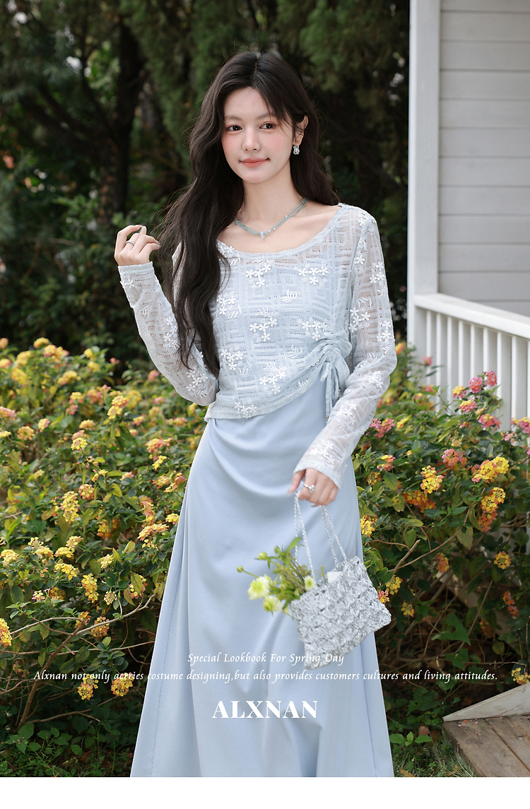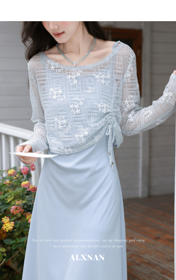鹿向南「雾蓝清梦」灰蓝色镂空罩衫女春夏新款时尚外搭氛围感T恤