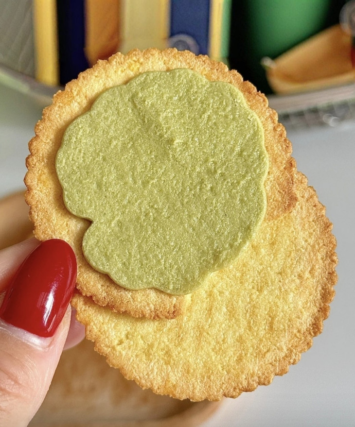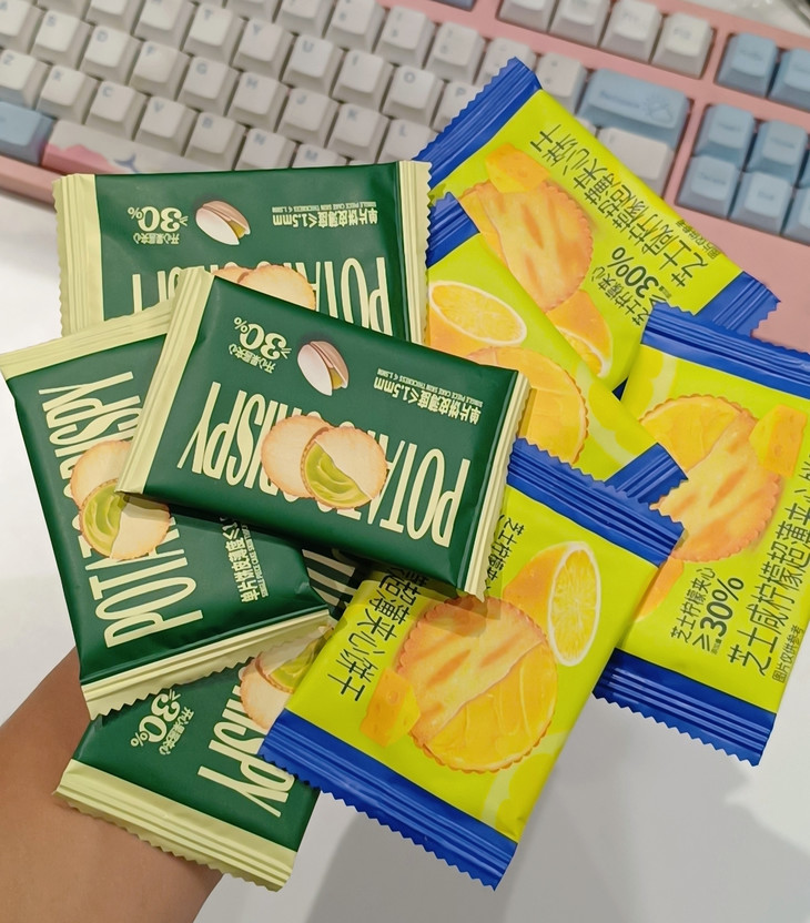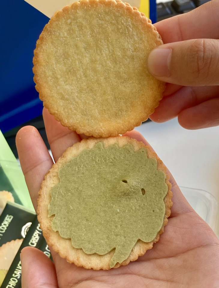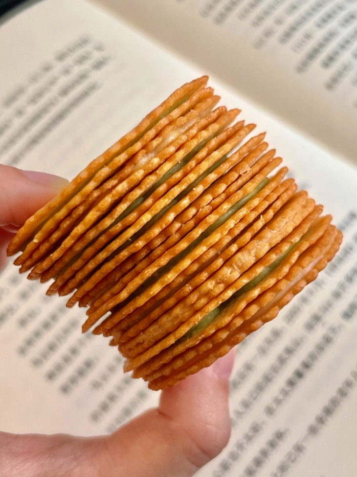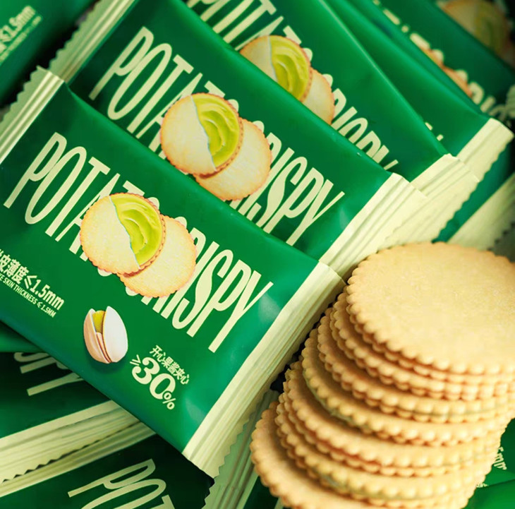 新口味碰撞❗️「甜原柿吉 薄脆夹心饼干 双口味」咸柠芝士➕开心果酱😋1.5mm薄的薯香小饼🍪酥酥薄脆 内馅丝滑绵密 🥺入口微甜不腻 夹心口味浓郁