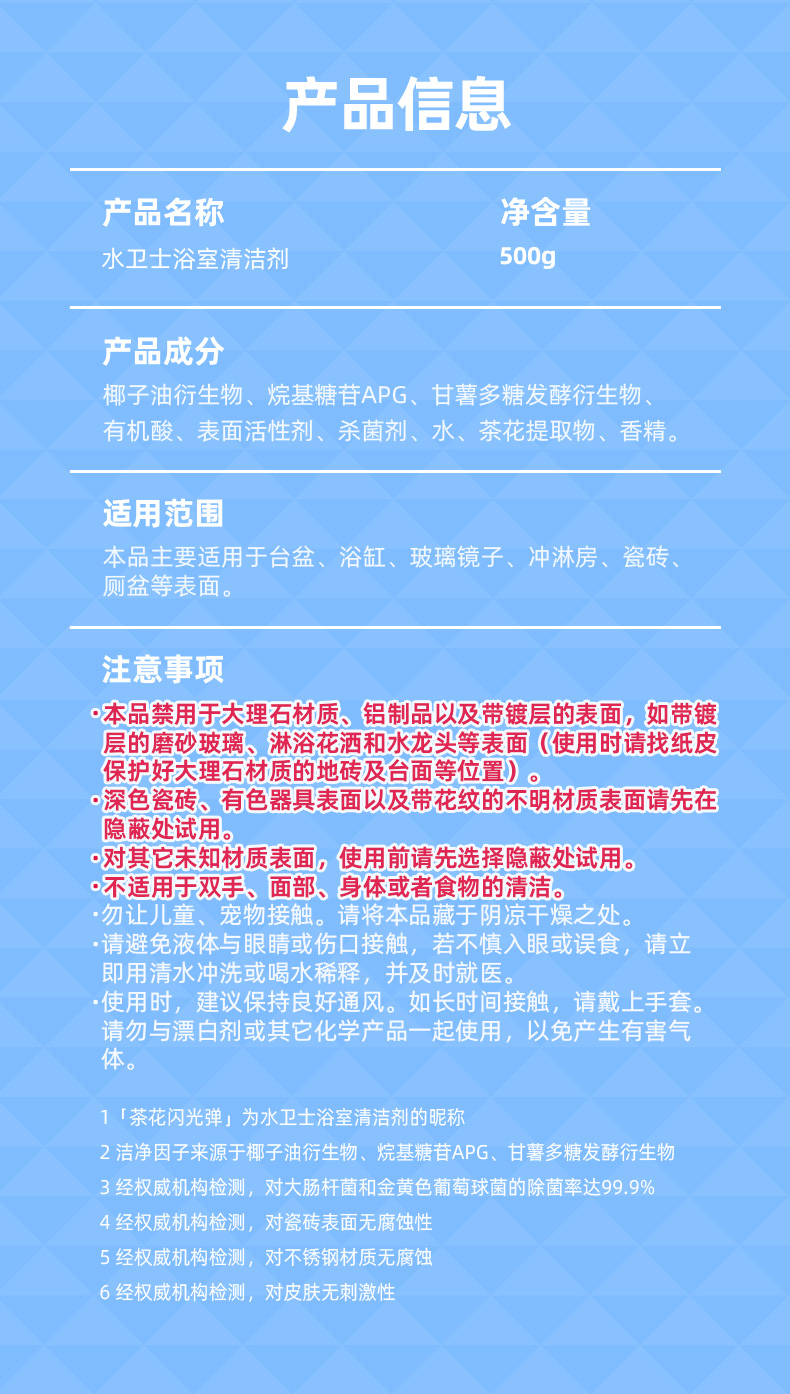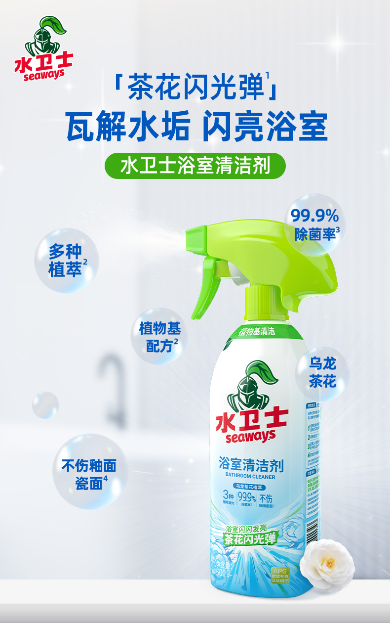 严选 | 水卫士浴室清洁剂 500g/瓶 卫生间玻璃瓷砖水龙头洗漱台水垢清洁