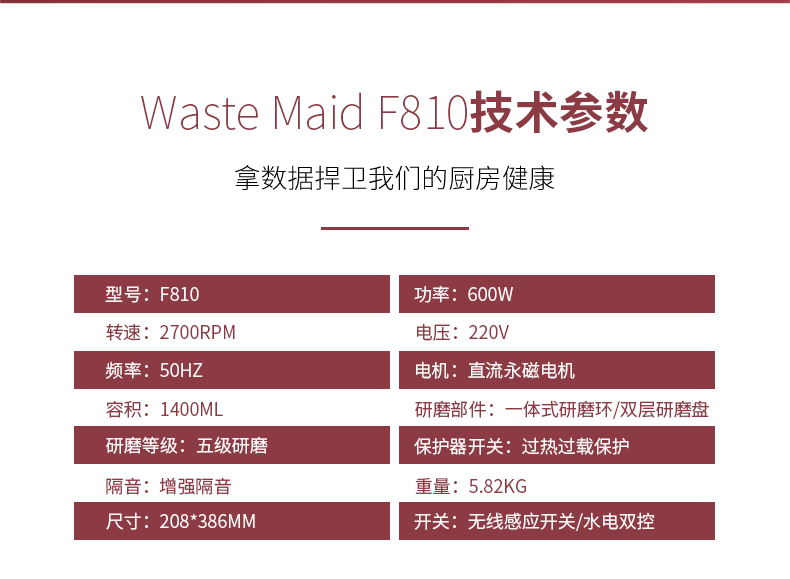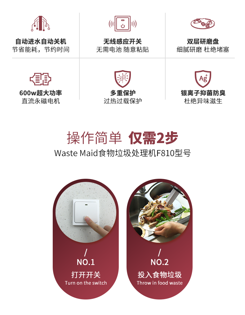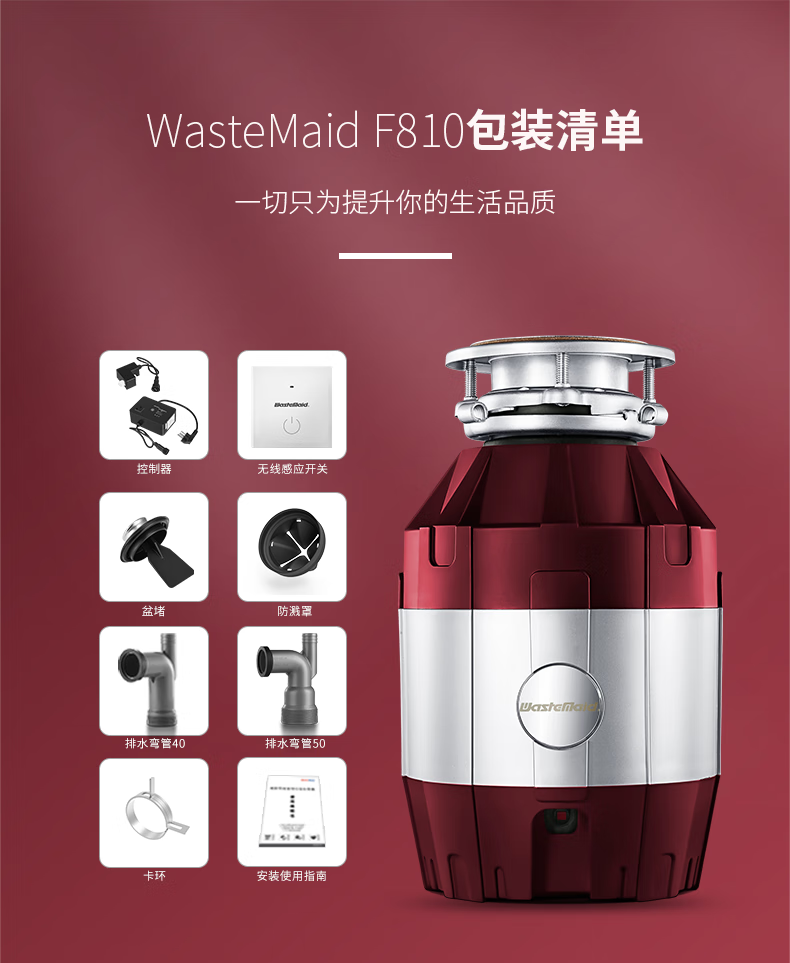 唯斯特姆/垃圾处理器/F810-RSF/食物垃圾处理器 厨余粉碎机全自动垃圾处理器 智能关机关水 全智能水电双控