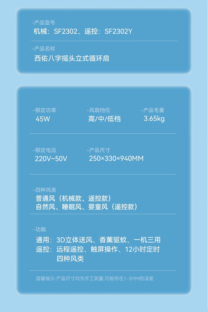 西佑八字摇头家用大风力可拆卸立式循环风扇香薰驱蚊SF2302机械款 /SF2302Y遥控款&4D智能语音款【工厂直发、一手货源、7天无理由退换货】