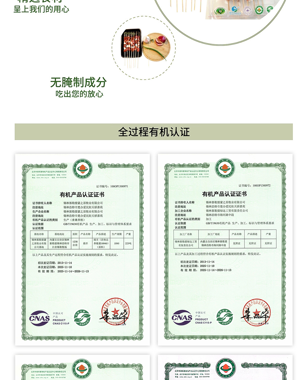 锡盟草原有机羊肉串160g*3长签|短签 包邮|基地直发