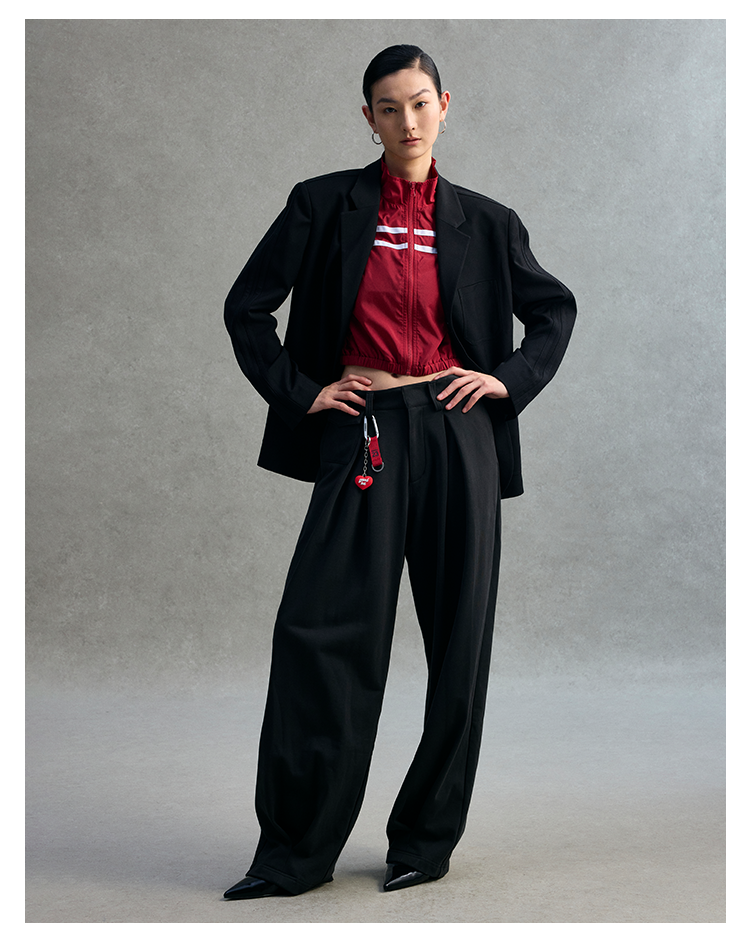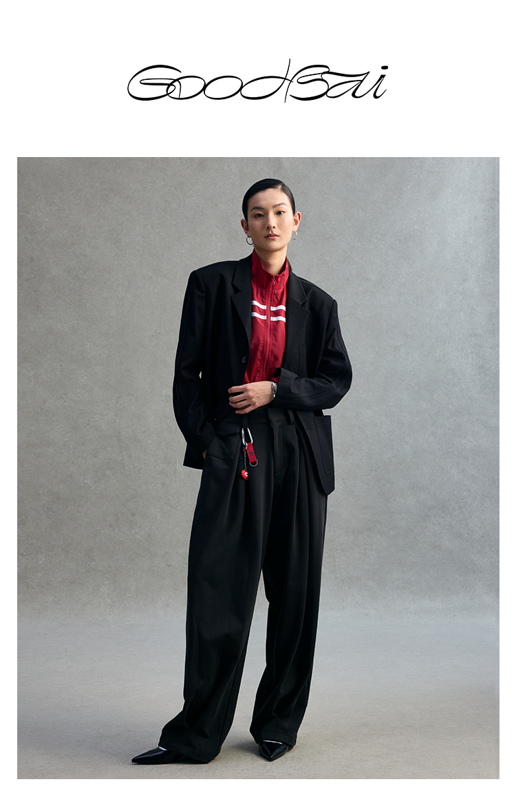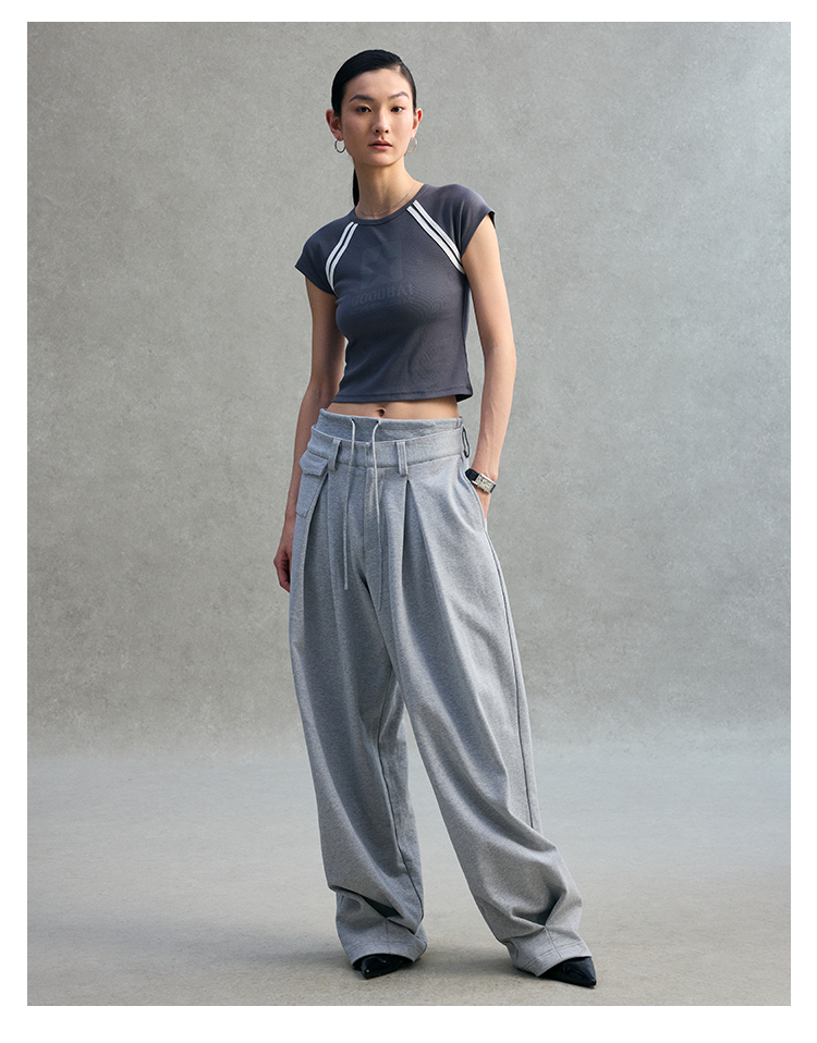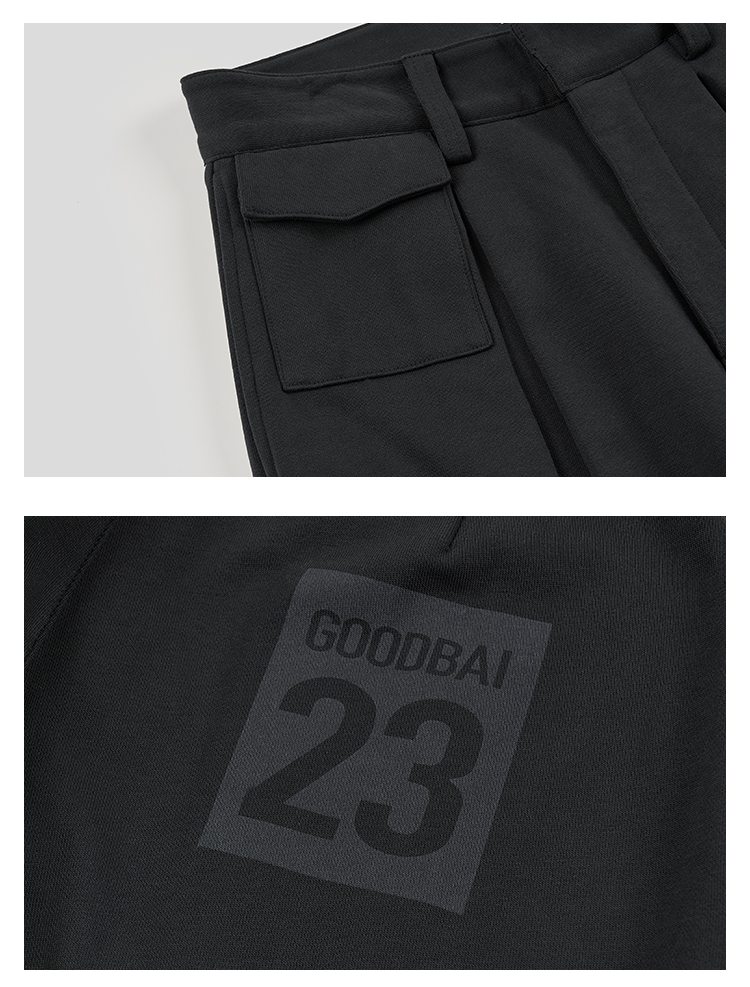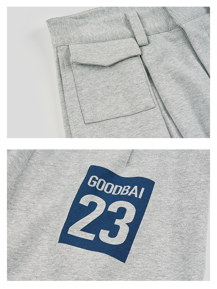 GOODBAI 23编号logo印花茧形双折高腰休闲卫裤