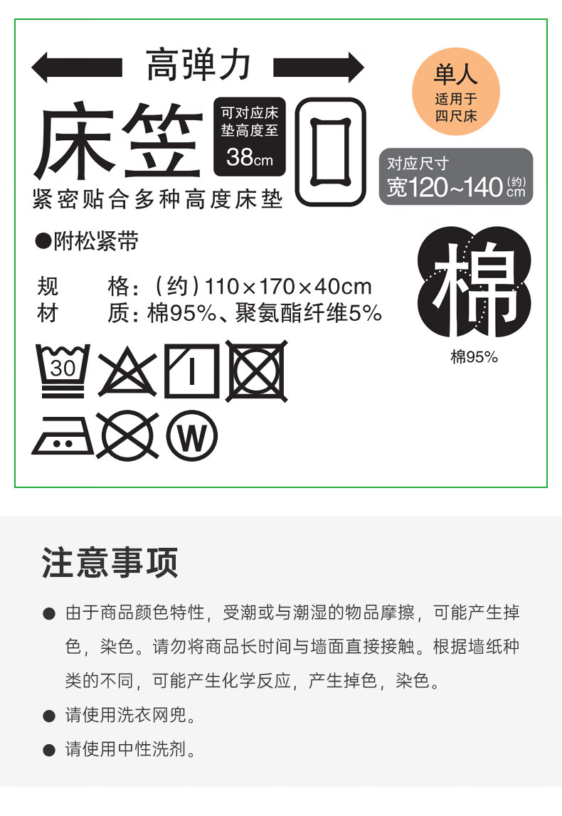 棉高弹床笠N-FIT 单人约110*170*40cm/双人约145*170*40cm