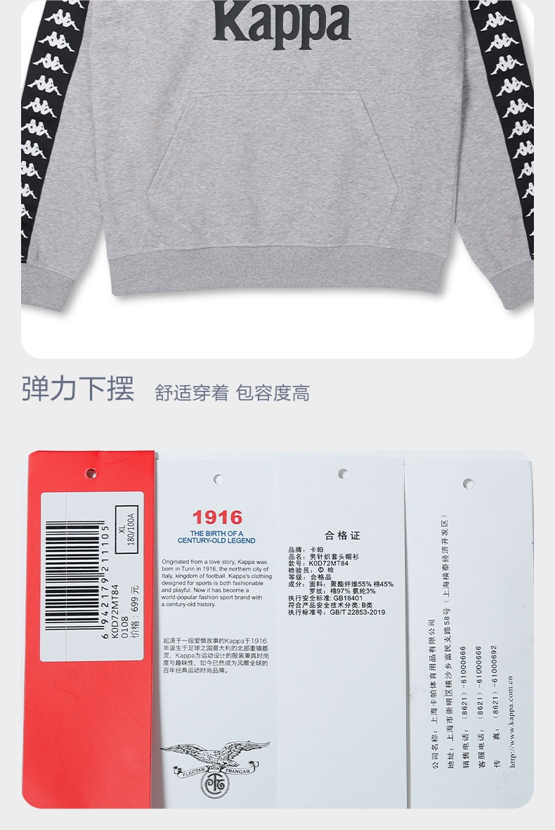 Kappa卡帕套头帽衫2023新款男串标织带运动卫衣简约针织休闲长袖K0D72MT84