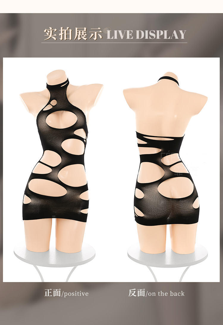 【情趣内衣】霏慕 千禧辣妹撕裂风连身网衣7546