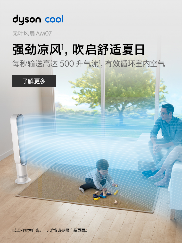 戴森(DYSON) AM07空气循环无叶风扇落地扇平稳强劲凉风适用客厅卧室 银白色