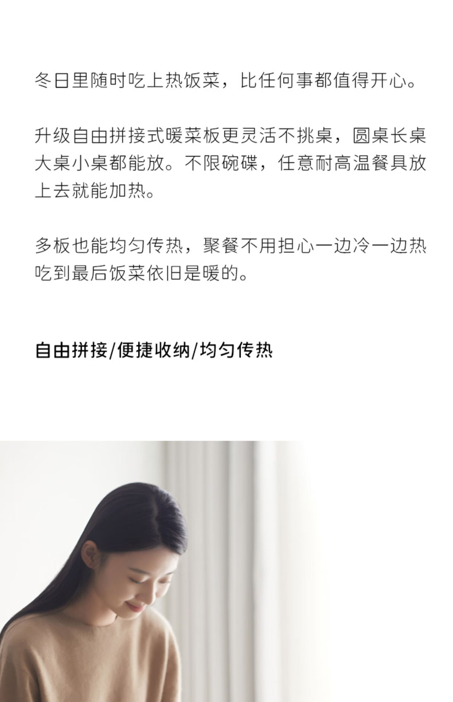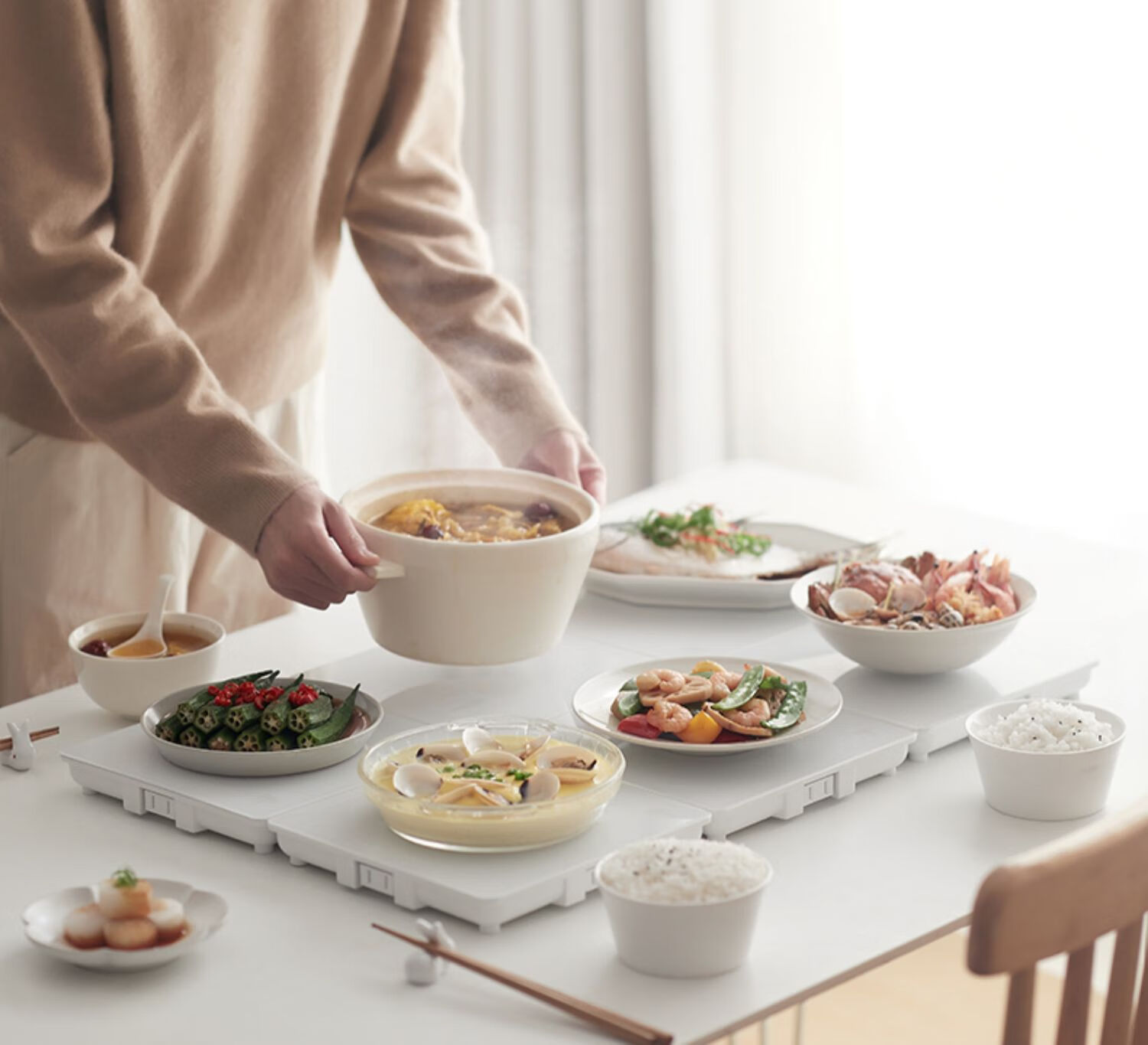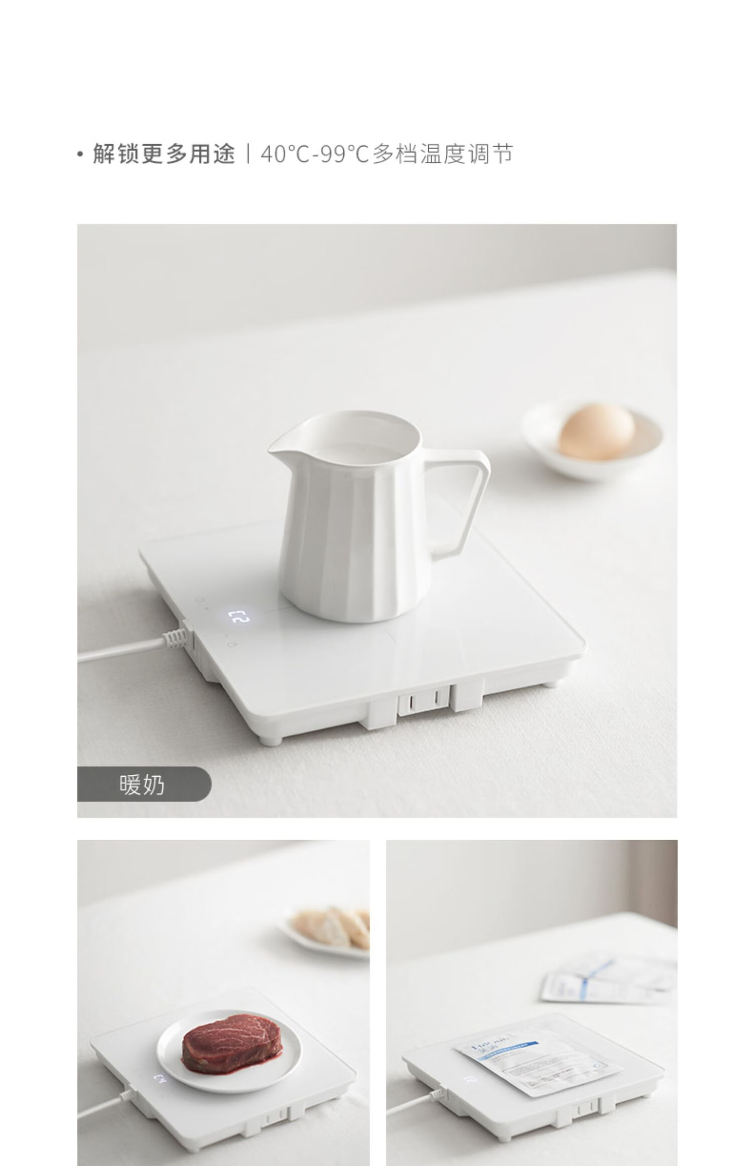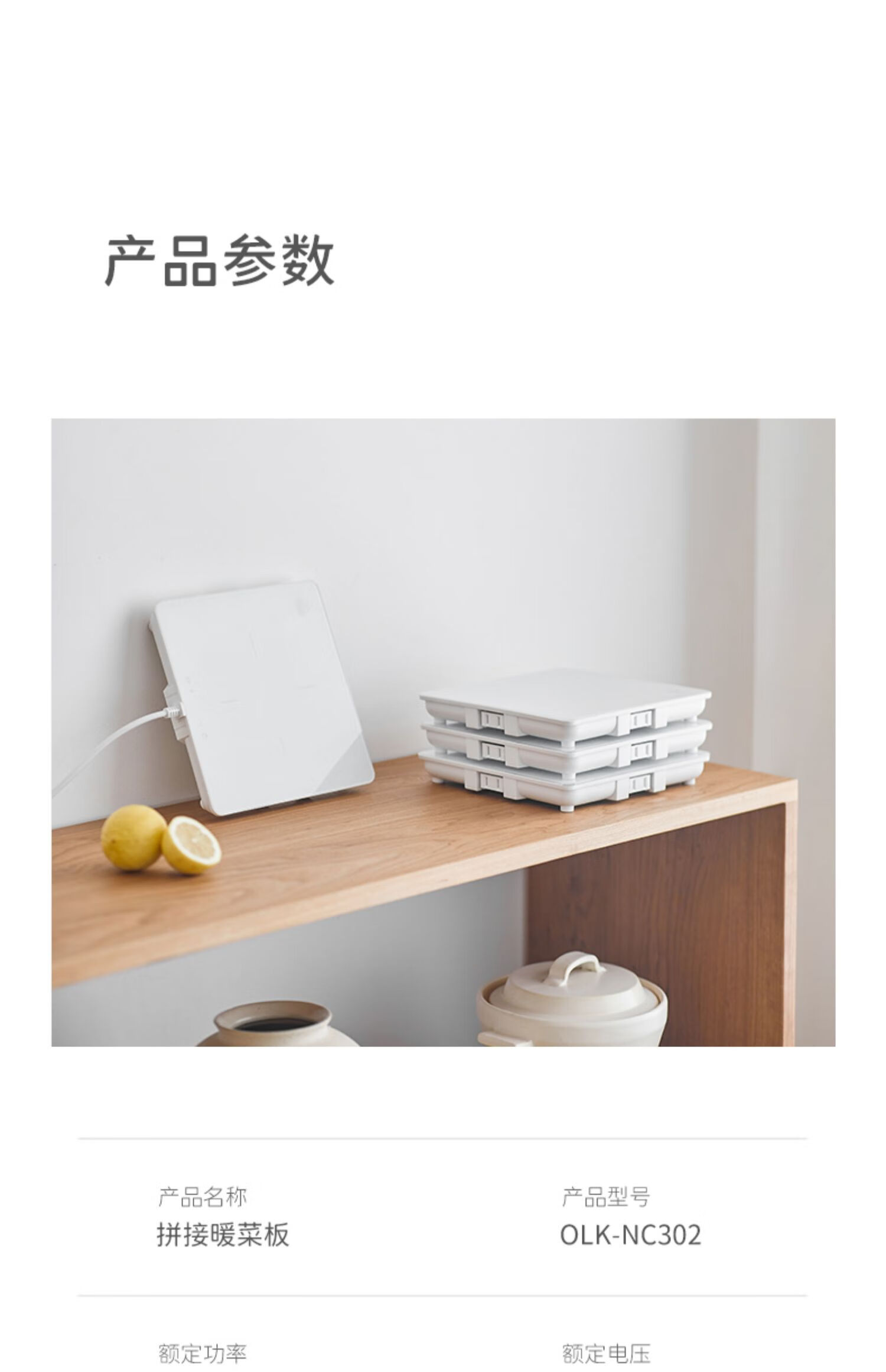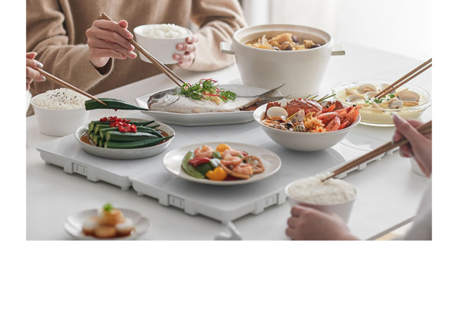 欧莱克(olayks) 暖菜板饭菜热菜板保温板家用多功能可拼接饭菜保温板桌面加热恒温暖菜垫热菜板陶白 四拼款(主机+3板款)