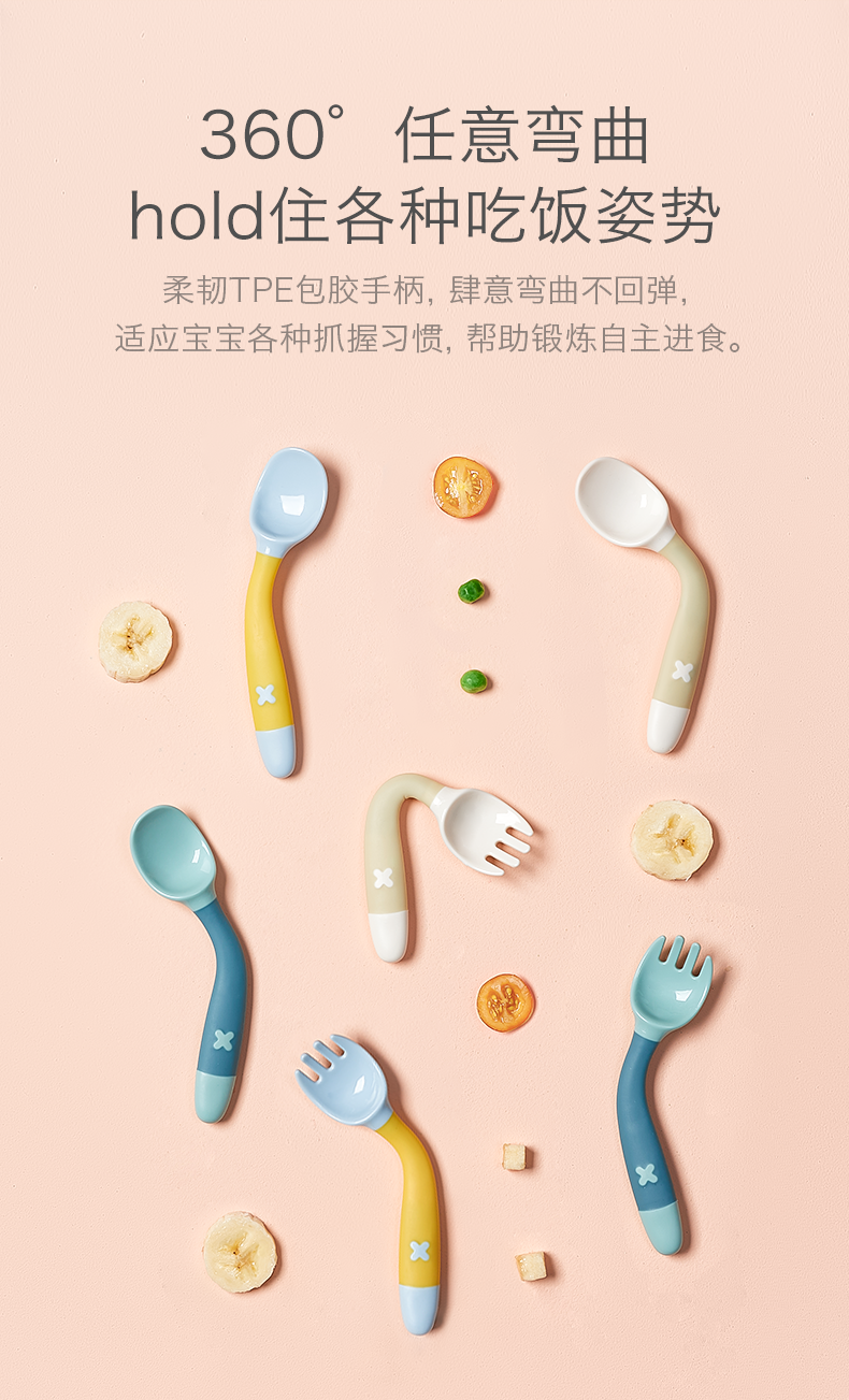 Babycare 婴儿辅食勺-弯弯叉勺 洛克黄 RWB001-A