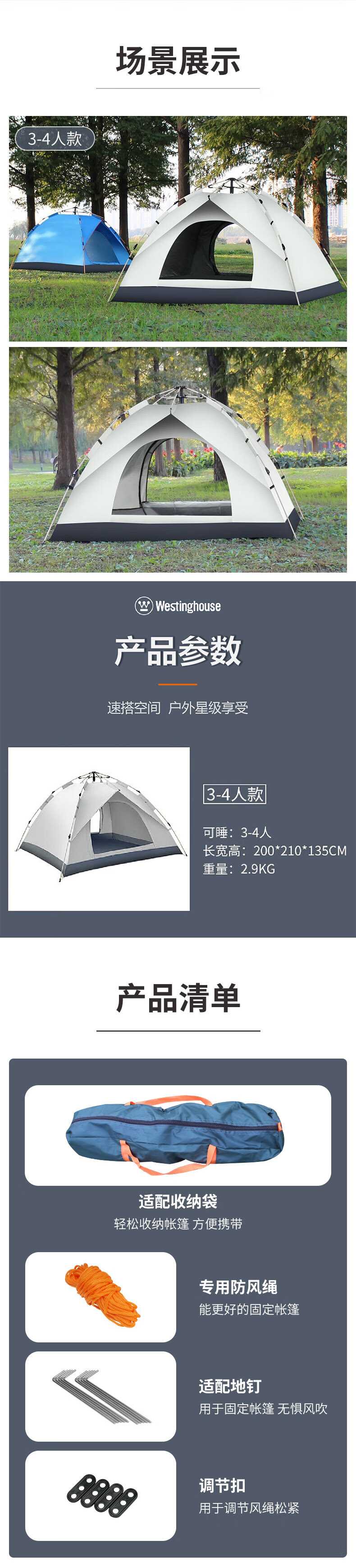 Westinghouse西屋全自动速开帐篷MN02A