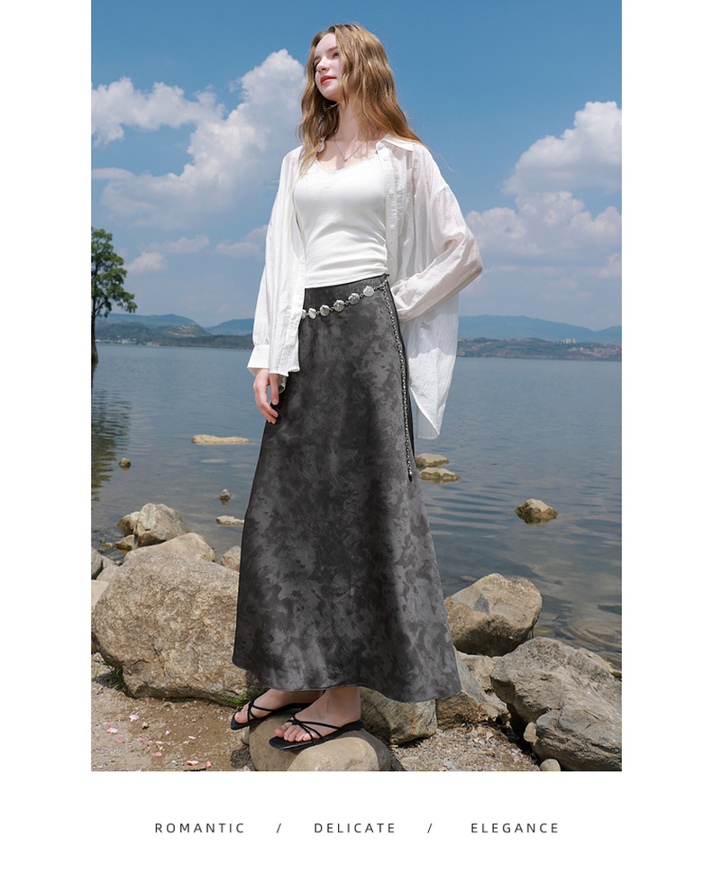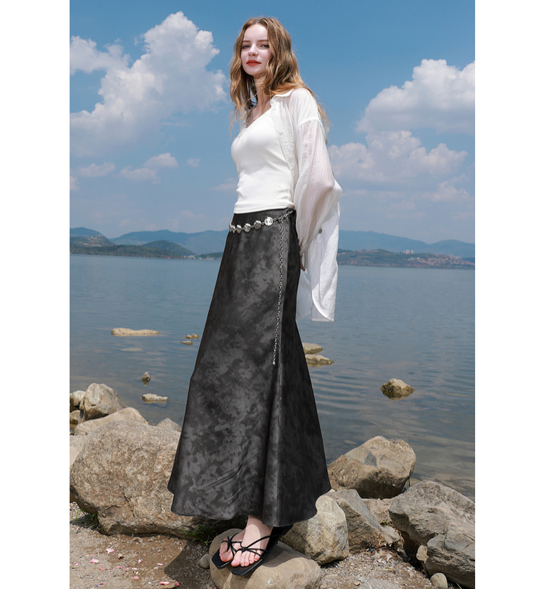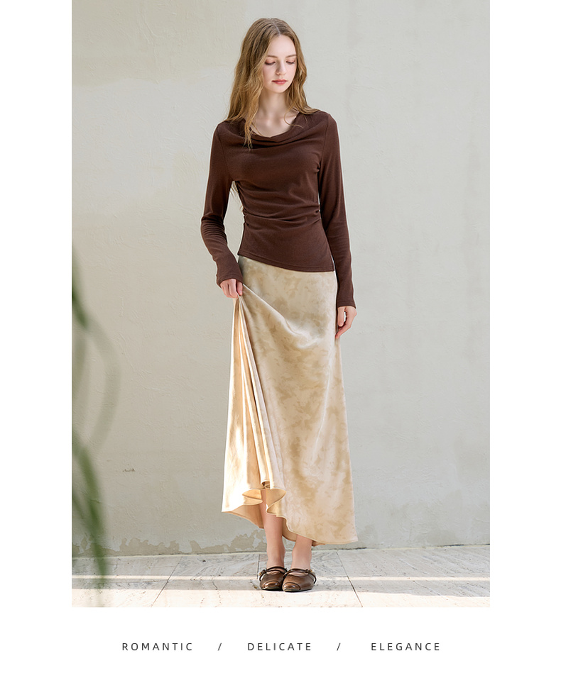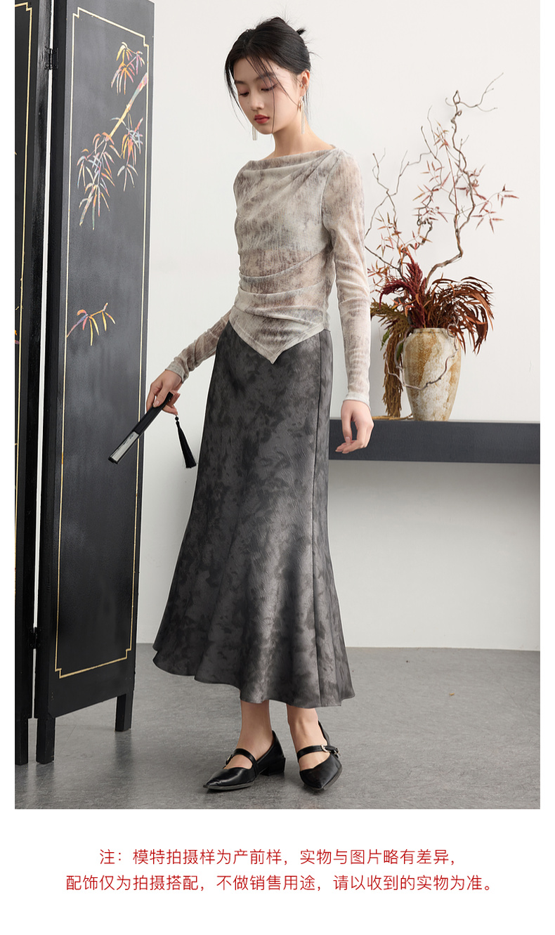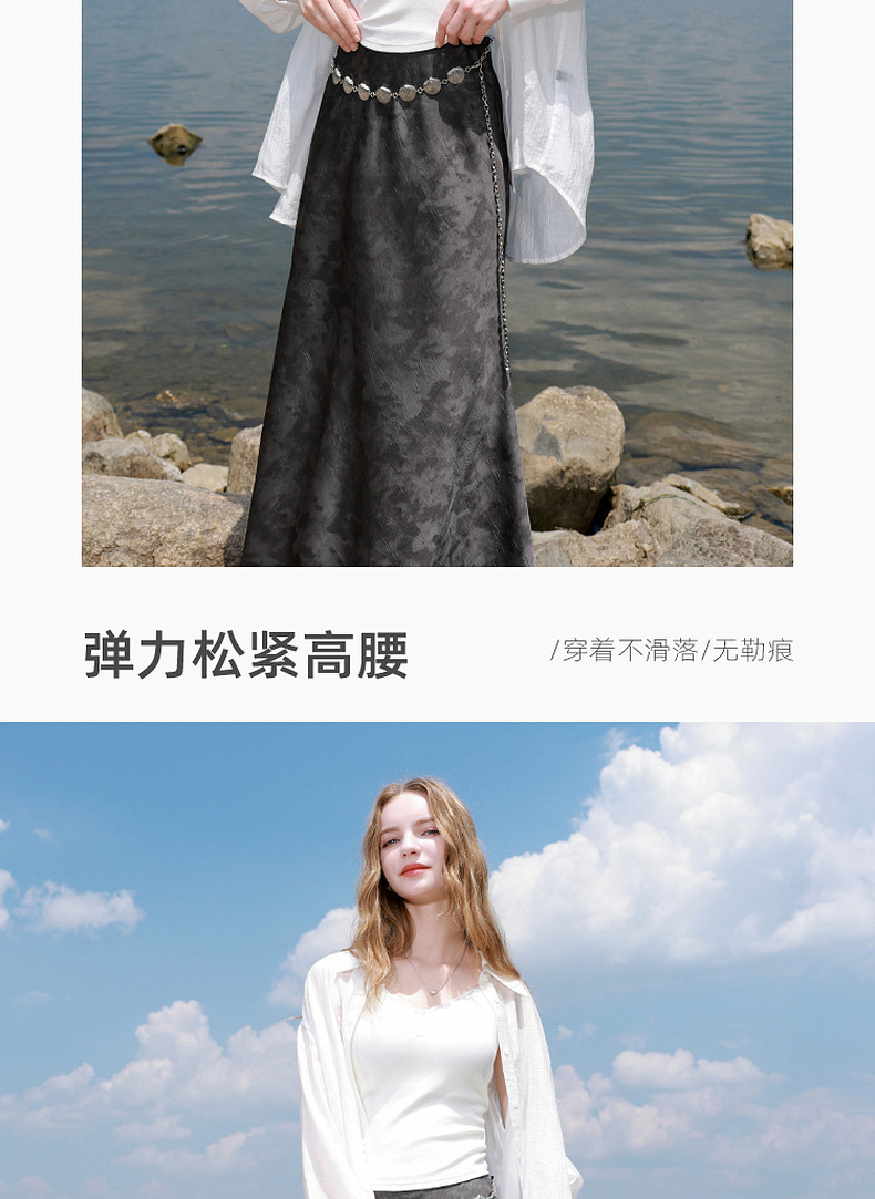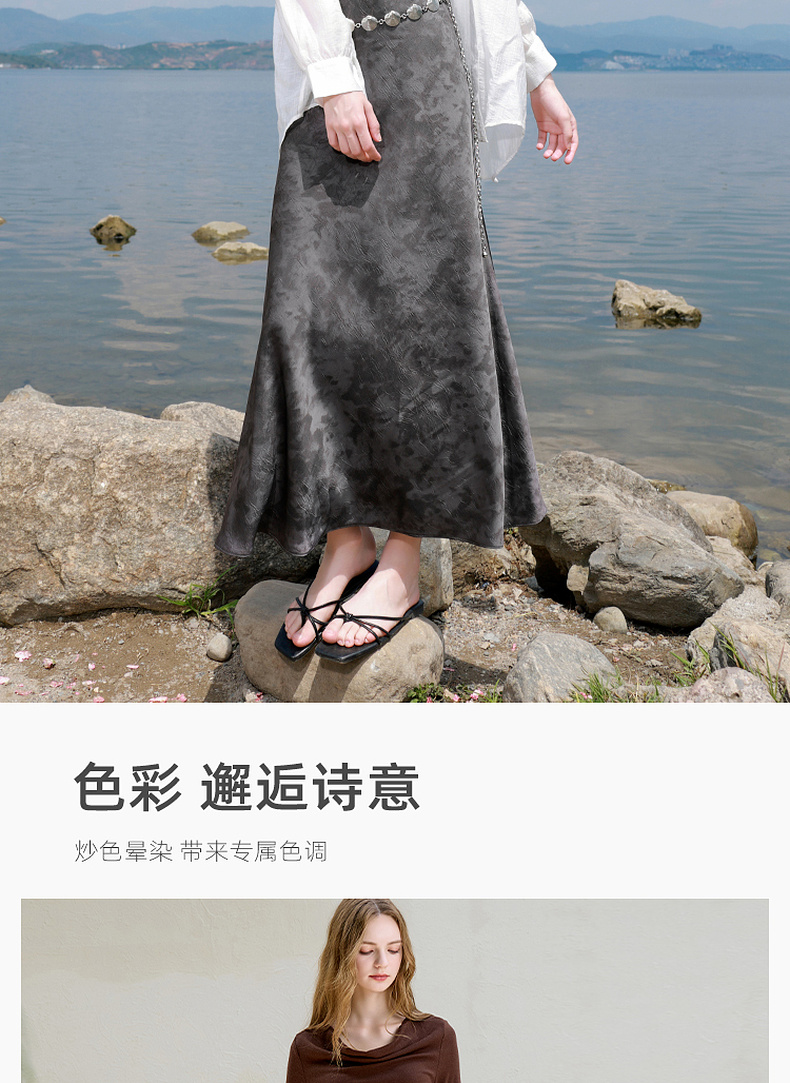 三彩2025秋季新款晕染印花半身裙松紧高腰A字裙浪漫长裙优雅M