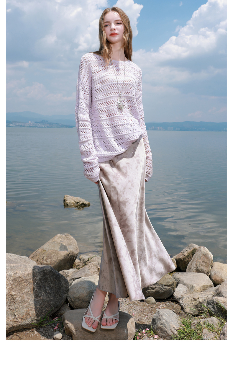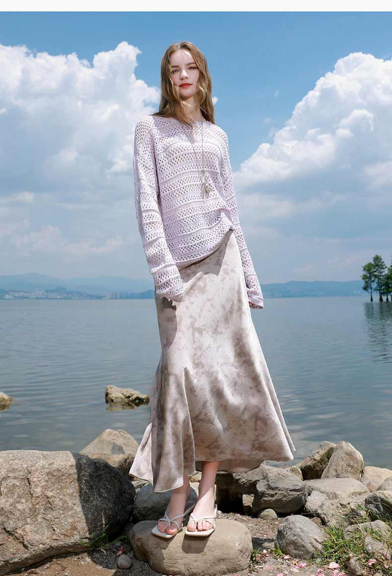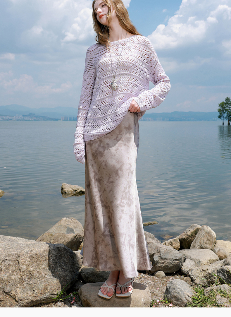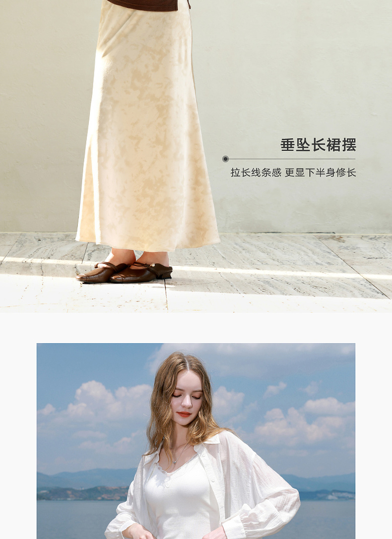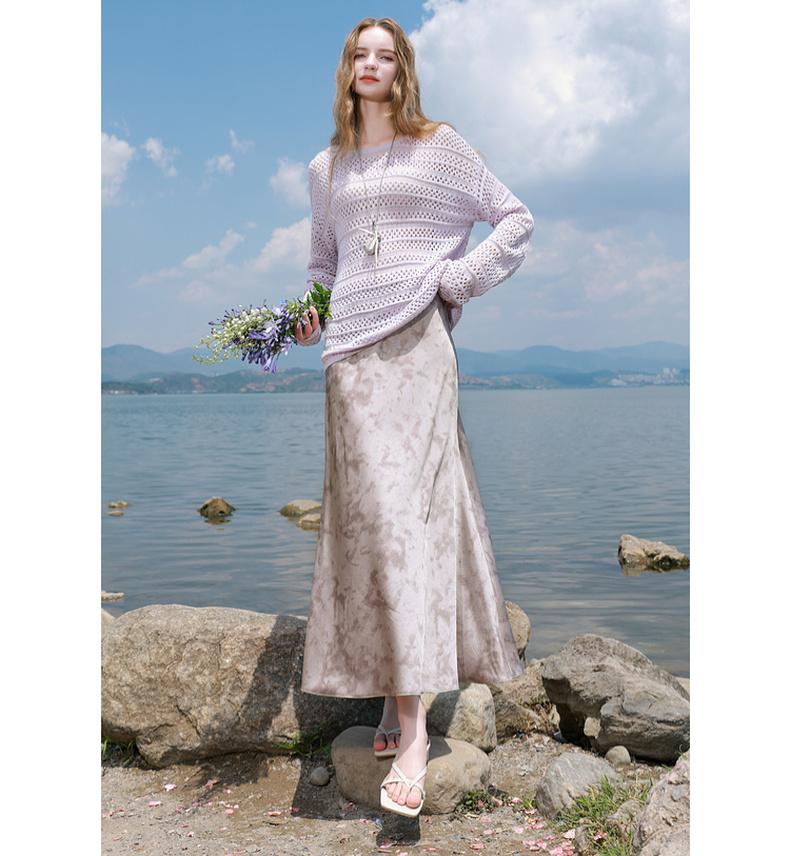 三彩2025秋季新款晕染印花半身裙松紧高腰A字裙浪漫长裙优雅M