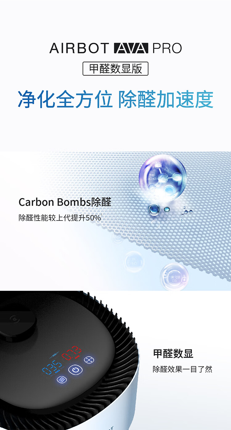 科沃斯(ECOVACS) 沁宝AVA PRO除甲醛数显版空气净化机器人智能家用除过敏源自动规划路线 AVA PRO除醛数显版 AVA PR