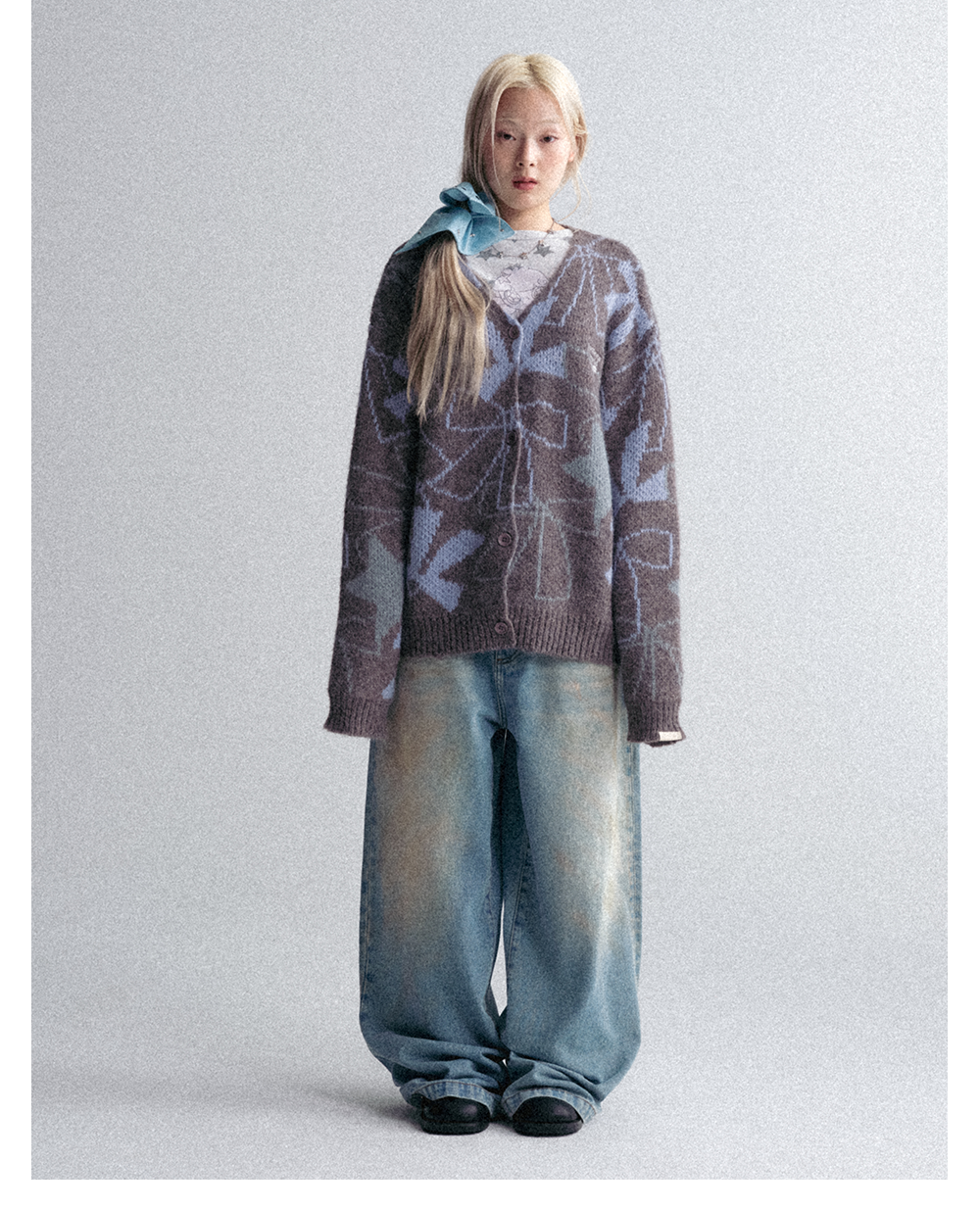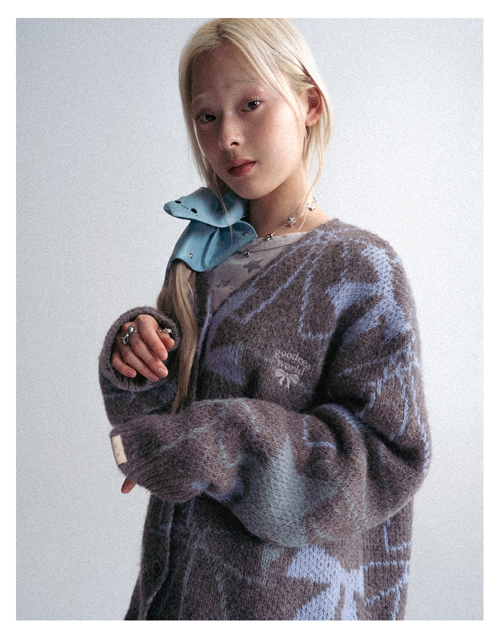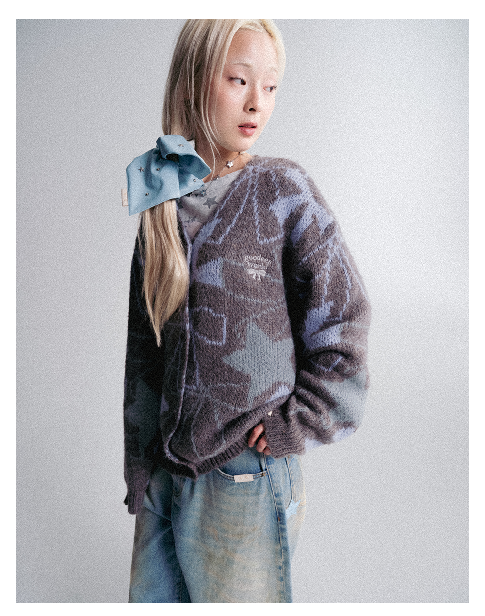 GOODBAI GOODEES 秋冬新款蝴蝶结提花毛衣开衫外套